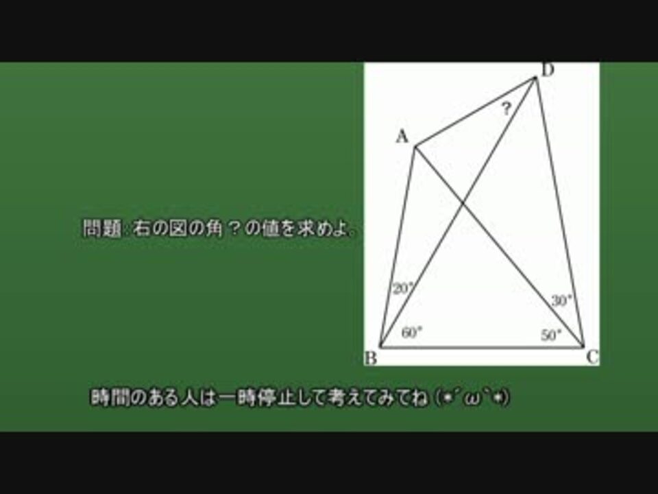気づいてしまえば分かりやすいが,なかなか気づけない。発想力が試される。<br /><br />×整数四角形 ○整角四角形<br /><br /><a href="https://www.nicovideo.jp/mylist/54941188" target="_blank" rel="noopener">mylist/54941188</a>