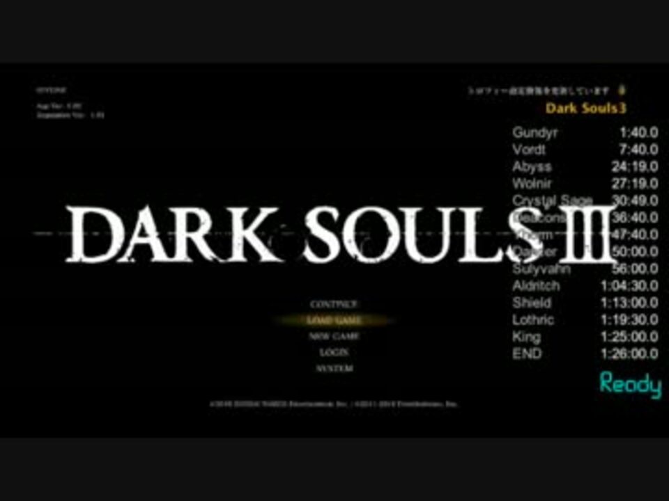 PC新調がしんどい<br />レギュレーション<br />ver1.02 Regulation 1.01 オフライン プロロ無し IGTを競う世界共通レギュ 一応RTAも計測<br />Rの計測開始はキャラクターが動き出してから <br />計測終了はED暗転時 ED暗転後祭祀場よりゲームを終了しIGTを確認<br /><br />ルート<br />強力な祝福が施された上質な武器の粗製派生ルート<br /> DPSは現在最高と言われている(RTAで使える武器内で)<br />理論値は1:15:00 IGT<br />投コメで解説するかもしれません 六分割で投稿 画質低 お兄さん許して <br />次 <a href="https://www.nicovideo.jp/watch/sm28572299" class="watch">sm28572299</a> PC不調の為1日事に投稿 治れば一括 すいません<br />ロス及びチャートの改善可能な点まとめ→ <a href="https://ch.nicovideo.jp/article/ar1002707" target="_blank" rel="noopener">ar1002707</a><br />ソウルシリーズRTAマイリスト <a href="https://www.nicovideo.jp/mylist/53271875" target="_blank" rel="noopener">mylist/53271875</a>