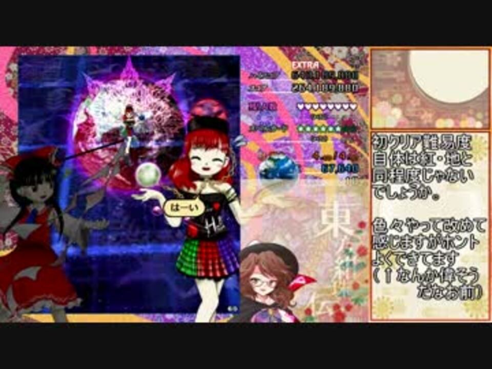 幻想郷総本部博麗神社!巫女やってる霊夢だぁ!<br />NNだけどよぉ!ビッとやってっからよぉ!<br />それからよぉ!動画スタイルをパクらせてもらってる先輩のためにもよぉ!がんばるからよぉ!<br /><br />余りに長すぎたので、画質確保のため前後編に分割してありますことをご了承ください<br />霊夢使用<br /><a href="https://www.nicovideo.jp/watch/sm28580651" class="watch">sm28580651</a>←前編 紅ノーマル→<a href="https://www.nicovideo.jp/watch/sm28641646" class="watch">sm28641646</a><br /> 紅→<a href="https://www.nicovideo.jp/watch/sm28645992" class="watch">sm28645992</a><br /><br />ゆっくり実況→<a href="https://www.nicovideo.jp/mylist/43923092" target="_blank" rel="noopener">mylist/43923092</a><br />東方関係→<a href="https://www.nicovideo.jp/mylist/35811789" target="_blank" rel="noopener">mylist/35811789</a><br />リプレイファイル→<a href="http://score.royalflare.net/th15/replay15/th15_ud0217.rpy" target="_blank" rel="noopener nofollow">http://score.royalflare.net/th15/replay15/th15_ud0217.rpy</a><br />動画最後のピアノ譜→<a href="http://www1.axfc.net/u/3647410" target="_blank" rel="noopener nofollow">http://www1.axfc.net/u/3647410</a> パス:8901<br /><br />「MASTER」について→取得回数が100以上になるとこの様に表示されます。適切に解説してくださったコメントがあったのですが、何故か運営削除されています