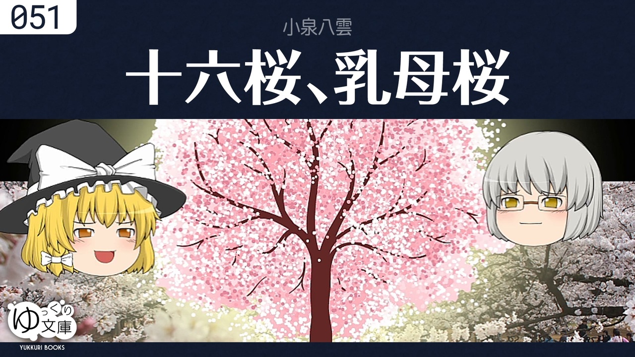 <span style="color: red;"><strong>051 日本人を読み解く《鍵》──</strong></span><br>小泉八雲は妻セツから、桜にまつわる怪談を2つ教えてもらう。家族を失って、桜だけ残ったサムライの話。乳飲み子のため、つらいお参りをする乳母の話。そして八雲の物語は海を渡り、日本の未来に大きな影響を与える。<br><span style="color: green;">Jiu-Roku-Zakura (1904), Ubazakura (1904) by Lafcadio Hearn</span><br><a href="#" class="seekTime" data-seekTime="01:24" onclick="seekNicoPlayer('#01:24'); return false;">#01:24</a> 十六桜 <a href="https://goo.gl/RTHmCr" target="_blank" rel="noopener nofollow">https://goo.gl/RTHmCr</a><br><a href="#" class="seekTime" data-seekTime="05:10" onclick="seekNicoPlayer('#05:10'); return false;">#05:10</a> 姥桜 <a href="https://goo.gl/3UGzjY" target="_blank" rel="noopener nofollow">https://goo.gl/3UGzjY</a><br>訳=小林幸治<br><a href="#" class="seekTime" data-seekTime="10:20" onclick="seekNicoPlayer('#10:20'); return false;">#10:20</a> フェラーズと桜<br><br>(うp主より)日本人にとっては「ありふれた怪談」ですが、西洋人の視点で見ると日本人の不可解さが見えてきます。八雲の著書は《鍵》となります。予備知識は編集後記に。<br>編集後記:<a href="http://trynext.com/story/ybook/yb051.php" target="_blank" rel="noopener nofollow">http://trynext.com/story/ybook/yb051.php</a><br><br>(参考)<br>【筋之助】小泉八雲「十六桜」より<br><a href="https://www.youtube.com/watch?v=VfW7ag_zS7U" target="_blank" rel="noopener nofollow">https://www.youtube.com/watch?v=VfW7ag_zS7U</a><br><br>●八雲とセツ <a href="https://www.nicovideo.jp/mylist/44187063" target="_blank" rel="noopener">mylist/44187063</a><br><a href="https://www.nicovideo.jp/watch/sm22399836" class="watch">sm22399836</a> 破られた約束<br><a href="https://www.nicovideo.jp/watch/sm23518755" class="watch">sm23518755</a> 生き神様<br><a href="https://www.nicovideo.jp/watch/sm22888805" class="watch">sm22888805</a> 停車場にて<br><a href="https://www.nicovideo.jp/watch/sm23518755" class="watch">sm23518755</a> 生き神様<br><a href="https://www.nicovideo.jp/watch/sm24455834" class="watch">sm24455834</a> 和解<br><a href="https://www.nicovideo.jp/watch/sm25096073" class="watch">sm25096073</a> かけひき, 守られた約束<br><a href="https://www.nicovideo.jp/watch/sm26173314" class="watch">sm26173314</a> 雪おんな<br><a href="https://www.nicovideo.jp/watch/sm28052948" class="watch">sm28052948</a> 葬られた秘密<br><a href="https://www.nicovideo.jp/watch/sm28065437" class="watch">sm28065437</a> お貞のはなし<br><a href="https://www.nicovideo.jp/watch/sm28632429" class="watch">sm28632429</a> <span style="color: #ff00ff;"><strong>十六桜, 乳母桜</strong></span><br><a href="https://www.nicovideo.jp/watch/sm31698628" class="watch">sm31698628</a> 夢を啖らうもの<br><a href="https://www.nicovideo.jp/watch/sm32522715" class="watch">sm32522715</a> 貉、私の守護天使<br><a href="https://www.nicovideo.jp/watch/sm38979851" class="watch">sm38979851</a> 衝立の乙女<br><a href="https://www.nicovideo.jp/watch/sm41036161" class="watch">sm41036161</a> 生霊<br><a href="https://www.nicovideo.jp/watch/sm43109638" class="watch">sm43109638</a> 幽霊滝の伝説<br><br>●ゆっくり文庫について<br>全部:<a href="https://www.nicovideo.jp/mylist/74874627" target="_blank" rel="noopener">mylist/74874627</a><br>近況:<a href="https://twitter.com/trynext" target="_blank" rel="noopener nofollow">https://twitter.com/trynext</a><br>---<br>