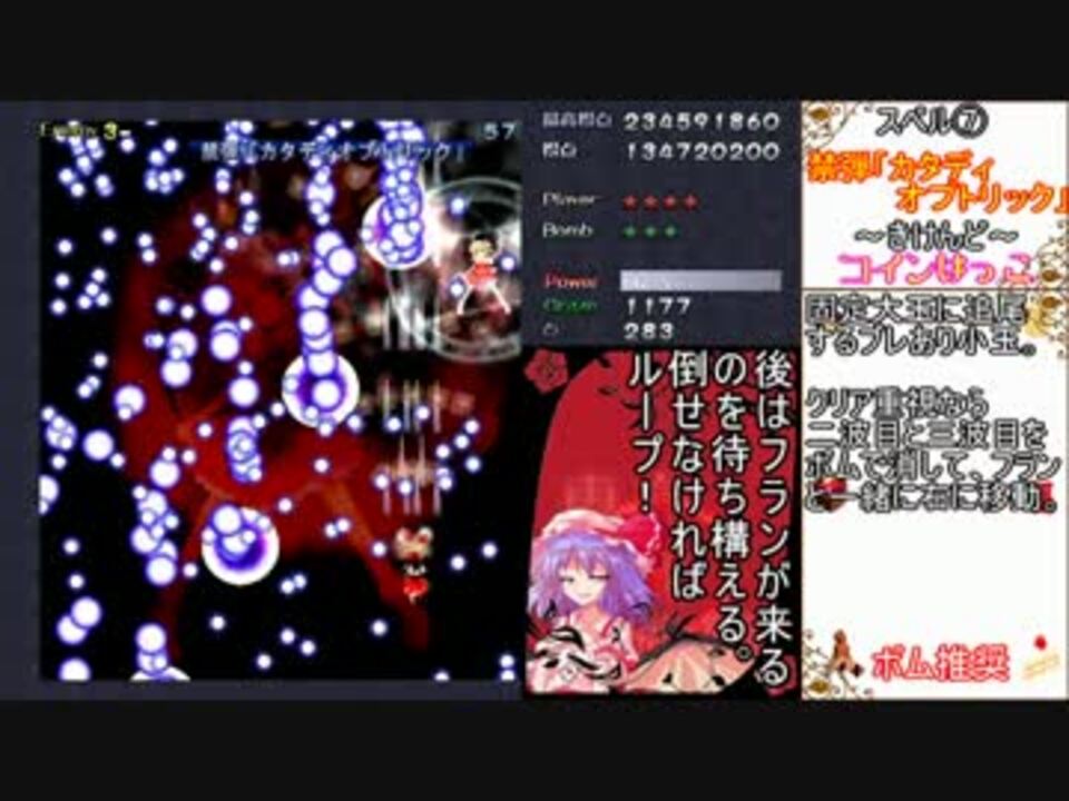 『東方紅魔郷』EXステージをノーミスノーボムで攻略した動画です<br />針巫女使用<br />v-patch使用<br /><br /><a href="https://www.nicovideo.jp/watch/sm28580651" class="watch">sm28580651</a>←紺珠伝 天空璋→<a href="https://www.nicovideo.jp/watch/sm31922172" class="watch">sm31922172</a><br /><a href="https://www.nicovideo.jp/watch/sm28641646" class="watch">sm28641646</a>←ノーマルクリア重視<br />ゆっくり実況→<a href="https://www.nicovideo.jp/mylist/43923092" target="_blank" rel="noopener">mylist/43923092</a><br />東方関係→<a href="https://www.nicovideo.jp/mylist/35811789" target="_blank" rel="noopener">mylist/35811789</a><br />リプレイファイル→<a href="http://replay.royalflare.net/replay2/th6_ud0305.rpy" target="_blank" rel="noopener nofollow">http://replay.royalflare.net/replay2/th6_ud0305.rpy</a><br /><br />Reeeeennnnnnneeeeee、妖怪志望、コウイチ、ヨコハマ=duress=タイヤ、虫.........、うづきちゃん諸兄広告ありがとうございます!<br /><br />「安置使ったらつまんなくなるだろ」←2016年現在、確実に撃破できる安地は見つかっていないと思います。あったら是非使いたいのですが。