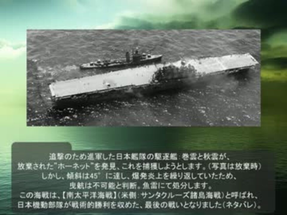 お久しぶりです。<br />今回は、サボ島沖夜戦⇒ヘンダーソン飛行場砲撃⇒南太平洋海戦です。<br />最近は色々なゲームで海軍が熱いですね。海に関わる者として、幸せです。<br /><br />前回 ⇒【<a href="https://www.nicovideo.jp/watch/sm24984276" class="watch">sm24984276</a>】 次回⇒【<a href="https://www.nicovideo.jp/watch/sm30028912" class="watch">sm30028912</a>】<br />マイリスト⇒<a href="https://www.nicovideo.jp/mylist/16496198" target="_blank" rel="noopener">mylist/16496198</a> 各種動画目次⇒<a href="https://www.nicovideo.jp/mylist/12413454" target="_blank" rel="noopener">mylist/12413454</a><br />まとめ:<a href="http://metosera625.blog46.fc2.com/" target="_blank" rel="noopener nofollow">http://metosera625.blog46.fc2.com/</a><br />Twitter:<a href="https://twitter.com/Methuselah_jp" target="_blank" rel="noopener nofollow">https://twitter.com/Methuselah_jp</a>