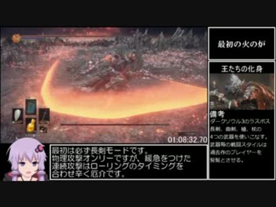 俺たちのRTAはこれからだ!<br />宮崎英高先生の次回作にご期待ください。<br /><br />火継ぎの祭祀場~エンディングまで<br />最初→<a href="https://www.nicovideo.jp/watch/sm28706663" class="watch">sm28706663</a> part1<br />前→<a href="https://www.nicovideo.jp/watch/sm28794593" class="watch">sm28794593</a> part6<br />ダクソ3RTA動画リスト <a href="https://www.nicovideo.jp/mylist/55634790" target="_blank" rel="noopener">mylist/55634790</a>