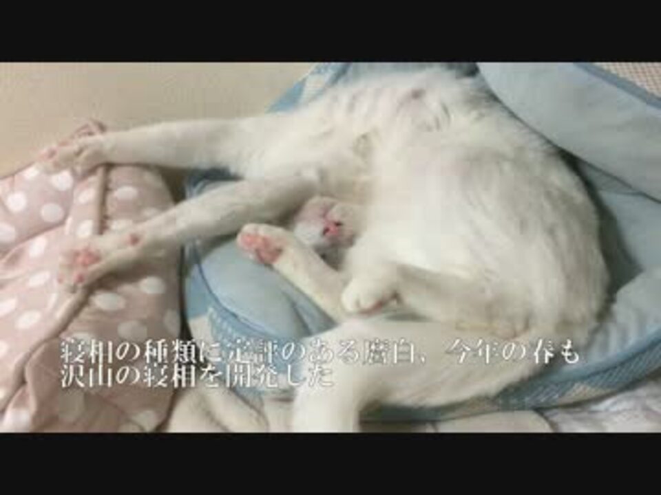 今年の春も寝相が悉くおかしな麿白でした。<br />ブログ <a href="http://blog.livedoor.jp/nekokamasu/" target="_blank" rel="noopener nofollow">http://blog.livedoor.jp/nekokamasu/</a><br />【2015年当アカウントベスト動画】<a href="https://www.nicovideo.jp/mylist/54894159" target="_blank" rel="noopener">mylist/54894159</a><br />【2014年当アカウントベスト動画】<a href="https://www.nicovideo.jp/mylist/47649306" target="_blank" rel="noopener">mylist/47649306</a><br />【宇宙猫兄弟】<a href="https://www.nicovideo.jp/mylist/50427722" target="_blank" rel="noopener">mylist/50427722</a><br />【野良猫観察(2016年)】<a href="https://www.nicovideo.jp/mylist/54340999" target="_blank" rel="noopener">mylist/54340999</a><br />【野良猫観察(2015年)】<a href="https://www.nicovideo.jp/mylist/47649301" target="_blank" rel="noopener">mylist/47649301</a><br />【保護猫の観察】<a href="https://www.nicovideo.jp/mylist/45329168" target="_blank" rel="noopener">mylist/45329168</a><br />【猫の子育て観察】<a href="https://www.nicovideo.jp/mylist/45828555" target="_blank" rel="noopener">mylist/45828555</a><br />【人懐こい野良猫】<a href="https://www.nicovideo.jp/mylist/41859707" target="_blank" rel="noopener">mylist/41859707</a><br />【公園猫戦争】<a href="https://www.nicovideo.jp/mylist/44561791" target="_blank" rel="noopener">mylist/44561791</a><br />【猫のω】<a href="https://www.nicovideo.jp/mylist/44575723" target="_blank" rel="noopener">mylist/44575723</a><br />【キジトラ地獄】<a href="https://www.nicovideo.jp/mylist/44823472" target="_blank" rel="noopener">mylist/44823472</a><br />【野良猫観察(2014年)】<a href="https://www.nicovideo.jp/mylist/44575764" target="_blank" rel="noopener">mylist/44575764</a><br />【野良猫観察(2013年)】<a href="https://www.nicovideo.jp/mylist/37025" target="_blank" rel="noopener">mylist/37025</a>