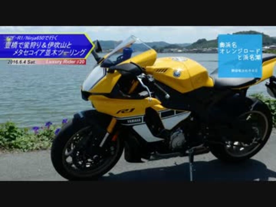 投稿20作目となりプチリニューアルを行います★<br /><br />テロップとナレーションをまず変更!<br />ラグフォントをやめてナレーションはラグが担当~(^^♪<br />尚、カミカミをノー編集で行きますので悪しからず。。。<br />・・・感想、苦情はコメントをどんどんお書込みくださいませ( `・∀・´)ノヨロシク<br /><br />今回は近所へR1でのツーリングとNinjaで滋賀のツーリングをお届けします。<br />蛍も見ごろを迎えて初夏を感じるこの頃<br />伊吹山やメタセコイアの緑も濃くなり、梅雨入り前の最終ツーリングとなります<br /><br />【マイリスト】<a href="https://www.nicovideo.jp/mylist/54960940" target="_blank" rel="noopener">mylist/54960940</a> <br />【前回】ビーナスライン絶景ツー <a href="https://www.nicovideo.jp/watch/sm28973659" class="watch">sm28973659</a> <br />【次回】R1 1000kmカウントダウン 法多山御前崎 <a href="https://www.nicovideo.jp/watch/sm29033214" class="watch">sm29033214</a><br />【Twitterやってます:気軽にフォローください★】 <a href="https://twitter.com/LuxuryRider2015" target="_blank" rel="noopener nofollow">https://twitter.com/LuxuryRider2015</a><br />