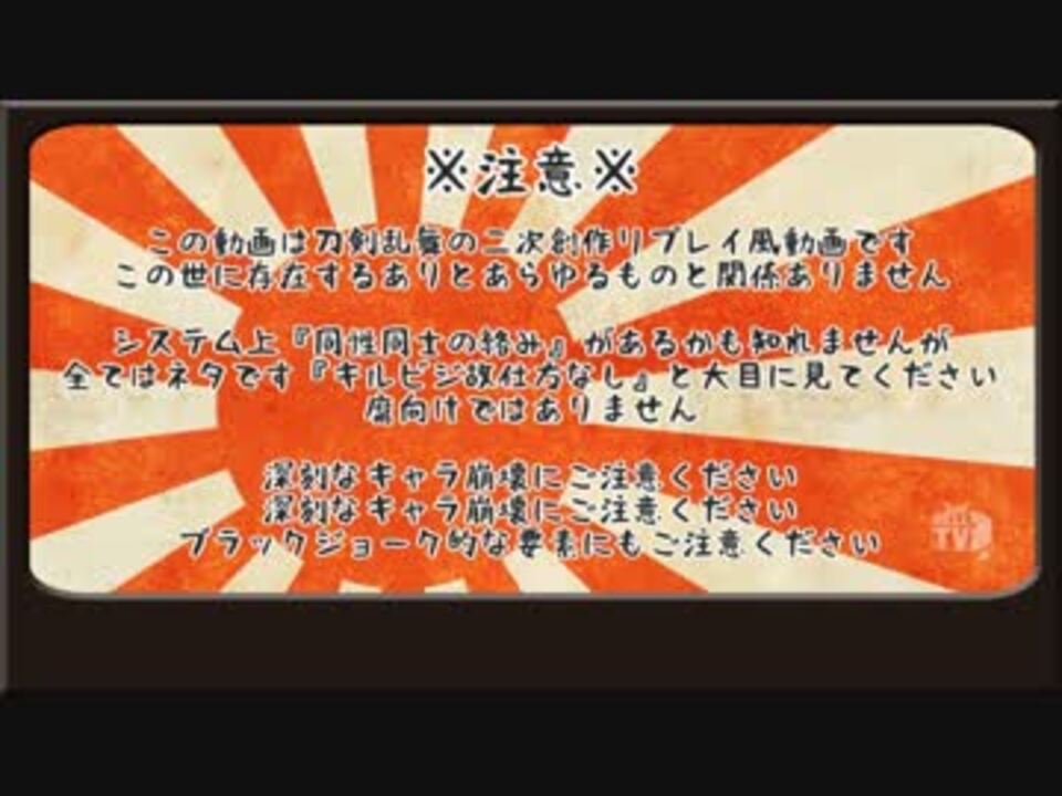 <font size="4">ある日夢を見た…それは「加州と薬研と一期と髭切と獅子王」が楽しそうにダイスを転がしている夢だった。そんなにやりたいなら、君たちちょっと動画に出てよ。</font><br />※うp主の別ジャンルの動画の話は動画内で出さないでくれると嬉しいです。<br /><br /><br />和葉、八百屋の審神者、美濃国審神者、kuman0mi、ミチ、筑前国審神者、嘉晴、白緒ω、スイカ、遡良、検非違使、水無瀬、こゆ、結城 若葉、sheep、眞生、うにょら、三日月、nono、山城国審神者、アッチェル、うどん職人、ぬまさん、ヘルP、harukage、_____、加賀国審神者、からあげ、しおん、備前国審神者、騎志、モウカエル、和嘉、Samariri さん宣伝ありがとうございます!<br /><br /><a href="https://www.nicovideo.jp/mylist/56161558" target="_blank" rel="noopener">mylist/56161558</a>/次→<a href="https://www.nicovideo.jp/watch/sm29123563" class="watch">sm29123563</a><br />ツイッター→@eihun0808<br />いままでのもの→<a href="https://www.nicovideo.jp/mylist/47819531" target="_blank" rel="noopener">mylist/47819531</a>