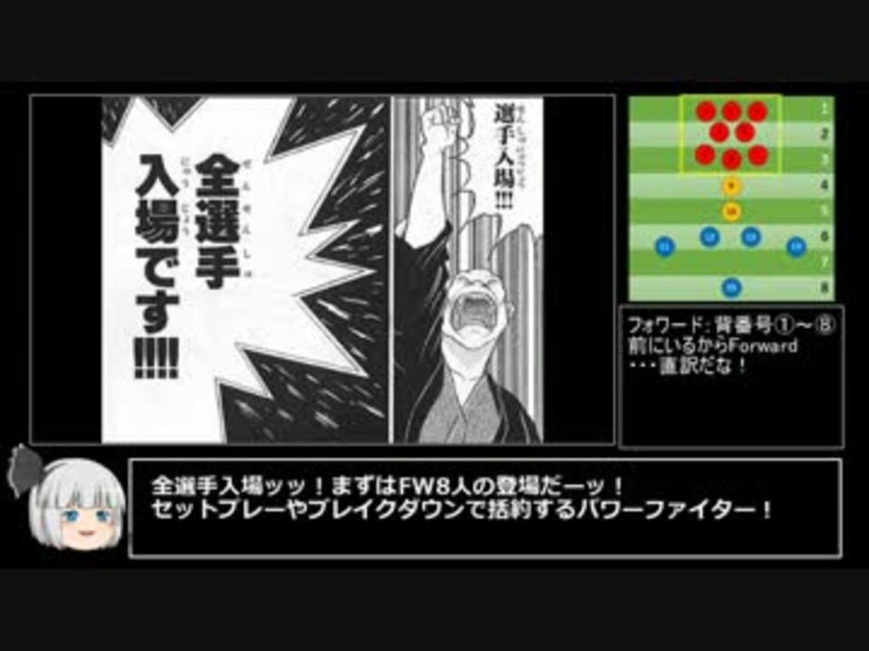 お ま た せ (ジャンピング土下座)<br /><br />PCがぶっ壊れたので初投稿です<br />投稿後気づいたけどまた最後ダーク♂尺余りじゃないか(呆れ)<br /><br />今週末のスコットランド戦みんなで応援、しよう!<br />deo兄貴、sed兄貴、ぽにお兄貴、時雨兄貴、荒井岳史兄貴、エヌる兄貴、aonami兄貴、かもし兄貴、赤い魔王兄貴宣伝ありがとナス!<br />特にぶれいぶ☆ぶろっさむ兄貴、毎回宣伝ありがとナス!<br /><br />ラグビーの守備 <a href="https://www.nicovideo.jp/watch/sm28369085" class="watch">sm28369085</a> ←前 次→ <a href="https://www.nicovideo.jp/watch/sm29165208" class="watch">sm29165208</a> スーパーラグビーとサンウルブズ<br /><br />その他ラグビー関連の自作動画 →<a href="https://www.nicovideo.jp/mylist/53251457" target="_blank" rel="noopener">mylist/53251457</a><br />ラグビー知らない人向けにルール説明等のブログやってます→<a href="https://ch.nicovideo.jp/enjoy-rugby" target="_blank" rel="noopener">ch.nicovideo.jp/enjoy-rugby</a><br />