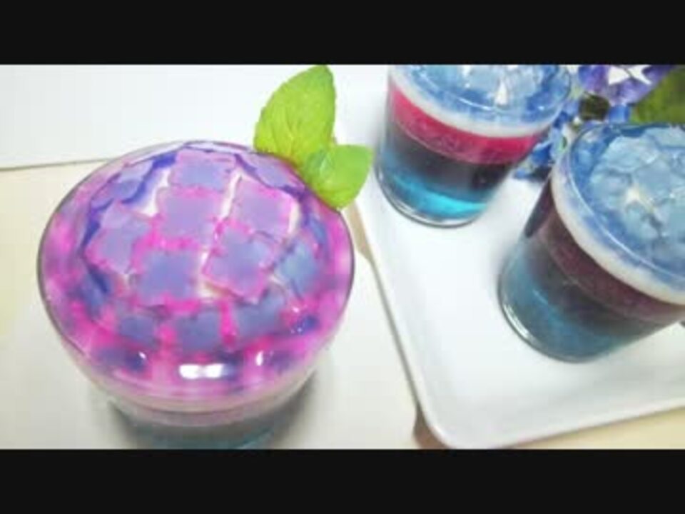ハーブのマロウブルーや<br>紫キャベツのアントシアニン色素でいろいろ試しながら<br>色の変化を楽しむメニューを作りました。<br><br>検証をはさむため説明が長いのはご容赦を。<br>ゼリー本編は2:59あたりから。<br>よく「全部動画で動かしてほしい」と言われます。<br>デジカメもipadもありますが編集用PCのスペック的に<br>動画を入れた編集は現在10秒程度が限界です。<br><br>広告ありがとうございました!(~6/7)<br>千夏さん<br><br />お借りしたものはコンテンツツリーと動画内にて。<br><span style="color: #333333;">うp主の料理動画→</span><a href="https://www.nicovideo.jp/mylist/52195565" target="_blank" rel="noopener">mylist/52195565</a> <br>描いてみた動画→ <a href="https://www.nicovideo.jp/mylist/62266081" target="_blank" rel="noopener">mylist/62266081</a> <br><span style="color: #333333;">Twitter→</span><a href="https://twitter.com/minly_san" target="_blank" rel="noopener nofollow">https://twitter.com/minly_san</a><br><span style="color: #333333;">Youtube→</span><a href="https://www.youtube.com/channel/UCuwpGG0zi8kR1aOGNe6nI3w" target="_blank" rel="noopener nofollow">https://www.youtube.com/channel/UCuwpGG0zi8kR1aOGNe6nI3w</a><br><span style="color: #333333;">cookpad→</span><a href="https://cookpad.com/kitchen/5420320" target="_blank" rel="noopener nofollow">https://cookpad.com/kitchen/5420320</a><br>