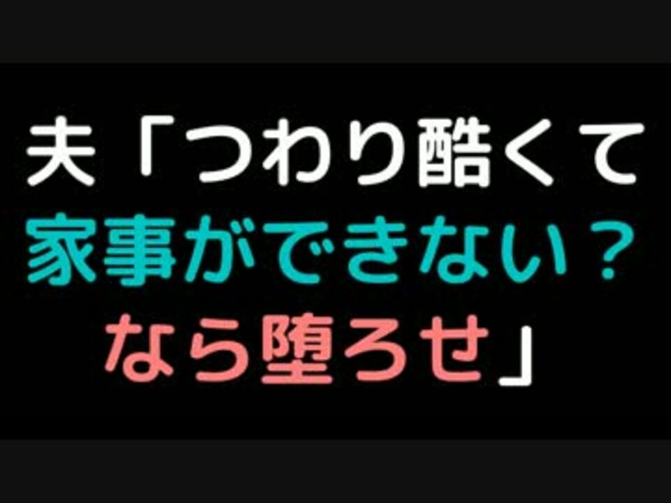 素晴らしいく思いやりに満ち満ちた夫さんですね!<br />やんごとなさすぎて絶対に関わりたくないですよ(;^ω^)<br /><br />一家の大黒柱として水を沸かすことすら無礼と<br />いやぁ今の時代に珍しい傑物ですなぁ(^^)<br /><br /><br />次作 【他人に厳しく自分に激甘。説教大好き人間の末路】:<a href="https://www.nicovideo.jp/watch/sm29107543" class="watch">sm29107543</a><br /><br />【謝罪してきた浮気嫁と再構築。したら裏でずっと浮気してやがったwww】:<a href="https://www.nicovideo.jp/watch/sm29101415" class="watch">sm29101415</a><br />【授業参観でA母宣言「うちの子が虐められてます!」】:<a href="https://www.nicovideo.jp/watch/sm29100742" class="watch">sm29100742</a><br />【新しくグループに入ってきた性悪(私ちゃんハブろー^^)】:<a href="https://www.nicovideo.jp/watch/sm29095374" class="watch">sm29095374</a><br /><br /><br />ツイッター始めました( ^ω^):<a href="https://twitter.com/kijo38" target="_blank" rel="noopener nofollow">https://twitter.com/kijo38</a><br /><br /><br />こぴぺ系投稿動画まとめ・BGM詳細:<a href="https://www.nicovideo.jp/mylist/32575780" target="_blank" rel="noopener">mylist/32575780</a> その6:<a href="https://www.nicovideo.jp/mylist/55864512" target="_blank" rel="noopener">mylist/55864512</a><br /><br />