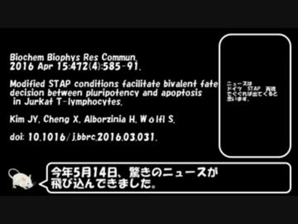 釣り宣言するだけ、2chの釣りスレの方がマスコミより良心的に思えた<br />広告誠にアリシャス!<br />2016年6/25,26,7/11<br />2018年1/23<br /><br />アメリカ編→<a href="https://www.nicovideo.jp/watch/sm28768125" class="watch">sm28768125</a><br />これまで作ったもの<br /><a href="https://www.nicovideo.jp/mylist/55689059" target="_blank" rel="noopener">mylist/55689059</a><br />STAPマイリスト<br /><a href="https://www.nicovideo.jp/mylist/56687548" target="_blank" rel="noopener">mylist/56687548</a><br /><br />ご意見、ご感想、ご要望などはこちらへ<br /><a href="https://twitter.com/lifesch_doc_P" target="_blank" rel="noopener nofollow">https://twitter.com/lifesch_doc_P</a><br /><br />お借りしたイラスト<br />Licensed under Creative Commons 表示 4.0 ©Togo picture gallery by DBCLS<br />お借りしたBGM<br /><a href="https://dova-s.jp/bgm/play4484.html" target="_blank" rel="noopener nofollow">https://dova-s.jp/bgm/play4484.html</a><br />doi: 10.1016/j.bbrc.2016.03.031.