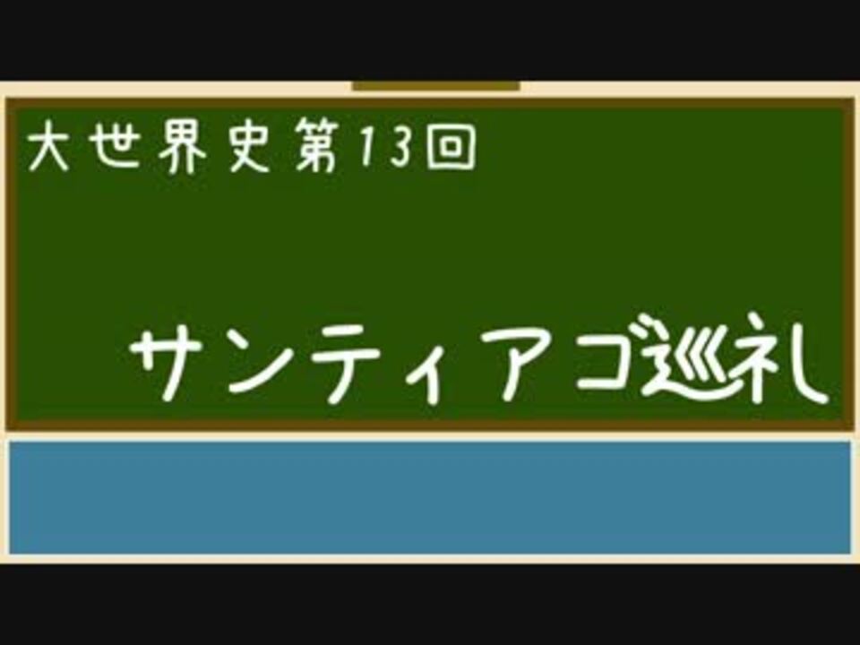 「巡礼」とかいう重要な割に教科書記述に恵まれないワード。<br />聖ヤコブ、レコンキスタ、巡礼路、建築様式、実際の巡礼のどれについて話そうかと悩んだので、全部盛り込んでみたよ。<br /><br />*歴史の知識を深める動画<br />*世界史B用語集に載っているような単語が範囲<br />*週1ペースを目指している<br /><br />第12回(十字軍概略)→<a href="https://www.nicovideo.jp/watch/sm29078234" class="watch">sm29078234</a><br />第14回(英選挙法改正)→<a href="https://www.nicovideo.jp/watch/sm29175730" class="watch">sm29175730</a><br />【大世界史】<a href="https://www.nicovideo.jp/mylist/55435393" target="_blank" rel="noopener">mylist/55435393</a><br /><br />◇こんなのも作ってます<br />【ゆっくりと散歩】<a href="https://www.nicovideo.jp/mylist/55732851" target="_blank" rel="noopener">mylist/55732851</a><br />【Fate元ネタ】<a href="https://www.nicovideo.jp/mylist/55435486" target="_blank" rel="noopener">mylist/55435486</a><br />