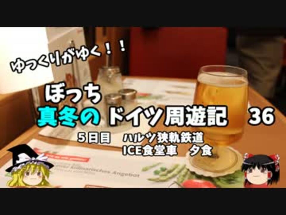 前話もたくさんの宣伝ありとうございました!<br />感謝感謝です!<br />今回でハルツ狭軌鉄道編は終了!<br />ICEの食堂車で夕食を食べて帰ります!<br /><br />第1章・・・出発編<br />第2章・・・デュッセルドルフ編<br />第3章・・・ベルリン編<font color="red">←今ココ</font><br />第4章・・・ミュンヘン編<br />第5章・・・帰路編<br /><br /><font color="red">コミュ→co2910020</font><br />twitter→@ryontan<br /><br /><a href="https://www.nicovideo.jp/watch/sm29146338" class="watch">sm29146338</a>←前回 <font color="red">次回→37話<a href="https://www.nicovideo.jp/watch/sm29323782" class="watch">sm29323782</a></font><br /> 車中泊旅行 キャンプ編→<a href="https://www.nicovideo.jp/watch/sm29188600" class="watch">sm29188600</a><br /><br />今作 ドイツ周遊記→<a href="https://www.nicovideo.jp/mylist/54938346" target="_blank" rel="noopener">mylist/54938346</a><br />今作 車中泊旅行記→<a href="https://www.nicovideo.jp/mylist/54706524" target="_blank" rel="noopener">mylist/54706524</a><br />前作 北海道旅行記→<a href="https://www.nicovideo.jp/mylist/52618057" target="_blank" rel="noopener">mylist/52618057</a><br />前々作 アメリカ横断記→<a href="https://www.nicovideo.jp/mylist/48621785" target="_blank" rel="noopener">mylist/48621785</a><br />前前々作 イタリア周遊記→<a href="https://www.nicovideo.jp/mylist/45763559" target="_blank" rel="noopener">mylist/45763559</a><br />前前前々作 NY旅行記→<a href="https://www.nicovideo.jp/mylist/44343854" target="_blank" rel="noopener">mylist/44343854</a>