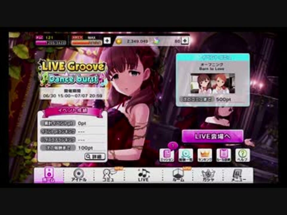 大変お世話になっております。<br />一ノ瀬志希担当Pのふぅと申します。<br /><font color=#f4f4f4>連打関係のアドバイスありがとう、少し成長できた</font><br /><b><font color=#ff6600 size=2>■お知らせ■</font></b><br />▼イベント「LIVE Groove Dance burst」への挑戦<br />▼イベント最終目標は「佐久間まゆと北条加蓮の2枚獲得」<br />▼奇声・妄言の類が多めなのでご注意くだちい<br /><br /><b><font color=#3e7b00 size=2>■動画情報■</font></b><br />▼iOS版「アイドルマスター シンデレラガールズ」の実況プレイ動画<br />▼担当アイドルとの出会い:<a href="https://www.nicovideo.jp/watch/sm28219517" class="watch">sm28219517</a><br /><font color=#f4f4f4></font><br /><b><font color=#b30000 size=2>■動画リンク■</font></b><br />【限定・杏キスガシャ編】<a href="https://www.nicovideo.jp/watch/sm29213506" class="watch">sm29213506</a> 【マイリスト】<a href="https://www.nicovideo.jp/mylist/55763815" target="_blank" rel="noopener">mylist/55763815</a> 【Part1リンク】<a href="https://www.nicovideo.jp/mylist/45024070" target="_blank" rel="noopener">mylist/45024070</a><br /><br /><font color=gray size=1>新シリーズ:<a href="https://www.nicovideo.jp/watch/sm29139320" class="watch">sm29139320</a></font>
