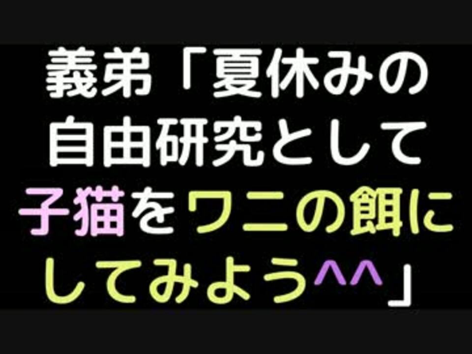 なじゃ!?なっっじゃごっのクズ(#^ω^)<br /><br />子猫を見てこの発想がでてくるって怖すぎますわ<br />こんな奴いつ何かのきっかけでDV魔になるかわかったもんじゃないですよ(#^ω^)<br /><br /><br />次作 【体調崩した同僚を送ってやったら味しめられた……】:<a href="https://www.nicovideo.jp/watch/sm29194220" class="watch">sm29194220</a><br /><br />【共働きの嫁が料理しなけりゃお金も入れない 「夫が払って当然」】:<a href="https://www.nicovideo.jp/watch/sm29188119" class="watch">sm29188119</a><br />【オンリーワン型の結婚式に参加 同僚「さっむwオンリーワンwww」】:<a href="https://www.nicovideo.jp/watch/sm29187458" class="watch">sm29187458</a><br />【ヒモになりてーが口癖の親戚「俺を養ってよ^^」】:<a href="https://www.nicovideo.jp/watch/sm29182028" class="watch">sm29182028</a><br /><br /><br />ツイッター始めました( ^ω^):<a href="https://twitter.com/kijo38" target="_blank" rel="noopener nofollow">https://twitter.com/kijo38</a><br /><br /><br />こぴぺ系投稿動画まとめ・BGM詳細:<a href="https://www.nicovideo.jp/mylist/32575780" target="_blank" rel="noopener">mylist/32575780</a> その6:<a href="https://www.nicovideo.jp/mylist/55864512" target="_blank" rel="noopener">mylist/55864512</a><br /><br />