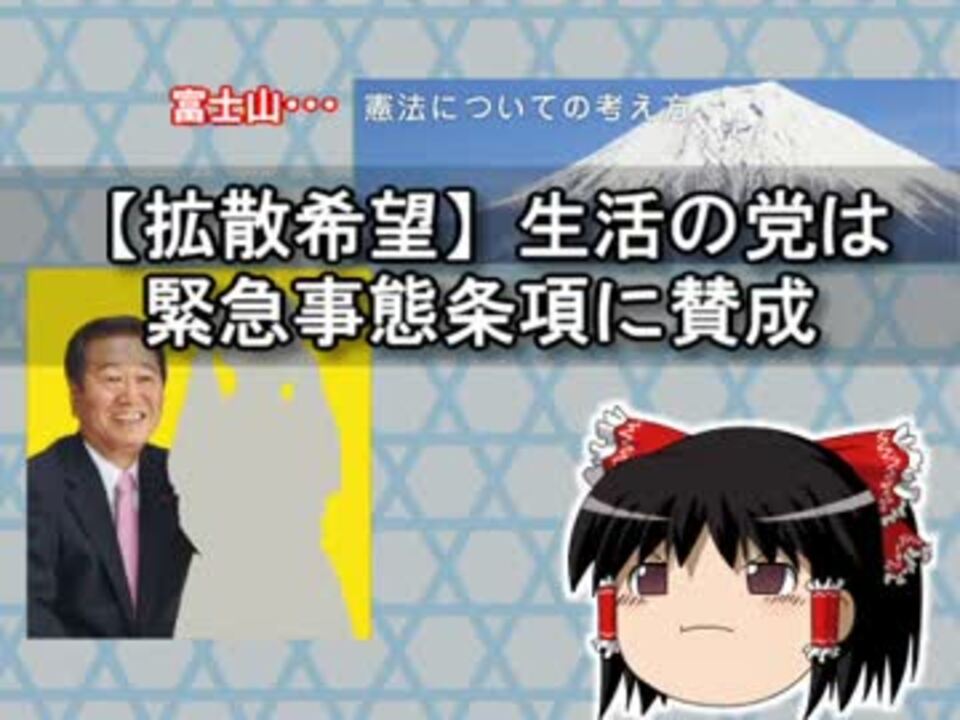 これはヤバい。生活の党も自民党の別働隊。<br /><br />憲法についての考え方<br /><a href="http://www.seikatsu1.jp/policy/constitution" target="_blank" rel="noopener nofollow">http://www.seikatsu1.jp/policy/constitution</a><br />安倍氏「一院制にすべき」<br /><a href="http://www.nikkei.com/article/DGXNASFS08046_Y1A200C1PE8000/" target="_blank" rel="noopener nofollow">http://www.nikkei.com/article/DGXNASFS08046_Y1A200C1PE8000/</a><br />(小林節 怒りの一問一答)<br /><a href="https://twitter.com/SetsuKobayashi/status/749085037430075392" target="_blank" rel="noopener nofollow">https://twitter.com/SetsuKobayashi/status/749085037430075392</a><br />憲法改正する、しない? 国政政党9党の公約は【参院選2016】<br /><a href="http://www.huffingtonpost.jp/2016/07/06/constitution_n_10825152.html" target="_blank" rel="noopener nofollow">http://www.huffingtonpost.jp/2016/07/06/constitution_n_10825152.html</a><br />(小沢一郎(事務所))<br /><a href="https://twitter.com/ozawa_jimusho/status/750180041716146177" target="_blank" rel="noopener nofollow">https://twitter.com/ozawa_jimusho/status/750180041716146177</a><br /><br />【使わせていただいた素材】(<a href="https://commons.nicovideo.jp/works/nc39410" target="_blank" rel="noopener">nc39410</a>)