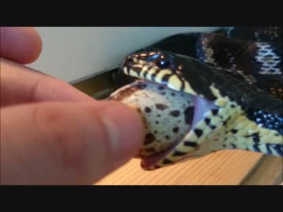 手渡しでヘビに卵をあげる