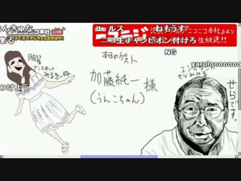 2016/07/11(月) 18:50開場 19:00開演 <a href="https://live.nicovideo.jp/watch/lv267503295" target="_blank" rel="noopener">lv267503295</a> 来場者数21,419 コメント数129,074<br />【タイトル】「うんこちゃん」こと「加藤純一」が2度目の生登場!世相をぶった斬る!★ニコラジ月曜日<br /> 【詳細文】7月11日(月)のニコラジは、人気ゲーム実況者「うんこちゃん」こと加藤純一さんが生登場!!<br /><br />0/2:これ , 1/2:<a href="https://www.nicovideo.jp/watch/sm29230430" class="watch">sm29230430</a> , 2/2:/<a href="https://www.nicovideo.jp/watch/sm29230490" class="watch">sm29230490</a><br />ニコラジまとめ【<a href="https://www.nicovideo.jp/mylist/57435529" target="_blank" rel="noopener">mylist/57435529</a>】<br />配信時系列 【<a href="https://www.nicovideo.jp/mylist/54357143" target="_blank" rel="noopener">mylist/54357143</a>】<br />__________________________________________________________<br />うんこちゃん【<a href="https://www.nicovideo.jp/user/33618224" target="_blank" rel="noopener">user/33618224</a>】【<a href="https://twitter.com/unkochan1234567】" target="_blank" rel="noopener nofollow">https://twitter.com/unkochan1234567】</a><br /> 生放送【<a href="https://ch.nicovideo.jp/unkchanel" target="_blank" rel="noopener">ch.nicovideo.jp/unkchanel</a>】【co2078137】<br />動画まとめ・ミラーコミュ【co1714192】