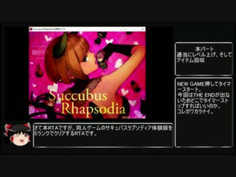 待たせたな!約束通り走らさせてもらいました。<br />この動画を視聴する上での注意点<br />1、エロ要素があります。苦手な方はブラウザバックして、どうぞ。<br />2、タイムは暫定です。正直タイマーストップの場所がわかりません。<br />3、(淫夢要素は)ないです。<br />THE ENDがないのでタイマーストップの場所がわかりません。<br />1、ラスボス倒したら<br />2、クリア後の成績が出る所<br />3、二週目突入する前<br />どこらへんが適当ですか、教えてください、お願いします。なんでもしますから。<br />次→<a href="https://www.nicovideo.jp/watch/sm29304023" class="watch">sm29304023</a><br />前→<a href="https://www.nicovideo.jp/watch/sm29250981" class="watch">sm29250981</a><br /><a href="https://www.nicovideo.jp/mylist/56187338" target="_blank" rel="noopener">mylist/56187338</a><br />追記:体験版がついてないご指摘、ありがとナス!走った後にこれが最新版じゃないことに気づきました、ごめんナス・・・。<br />槍男兄貴、キャスト兄貴、薔薇煮兄貴、宣伝ありがとナス!