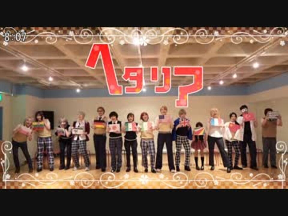 ciao!うp主ですよ!<br /> <br />ヘタリアの10周年を遅ればせながらお祝いしました!<br /> 踊ってみたをやる予定だったのがいつのまにか番組ができてたよ!<br />たくさんの笑顔をくれたヘタリアにありがとう・・・!!<br />大好きな気持ちをいっぱい詰め込みました!<br /><br /><br /> <font color="red"><font size="4">※タイトルの通りコスプレ動画です。苦手な方は閲覧をお控えください。<br /> ※スタジオには撮影内容を説明した上で、許可を得て撮影しております。<br /> ※参加者への誹謗中傷はお断りしています。</font></font><br /> <br />(追記)再生、コメ、マイリス大感謝!<br />猫川さんmizさん月朧さんヒラガナさん石だ。さんレーミンさん水流都さん蓮さんあすはさんヨトさん小鳥さんたきがわさんぽちさん魔術部員さんriaさん提供ありがとうございます!!