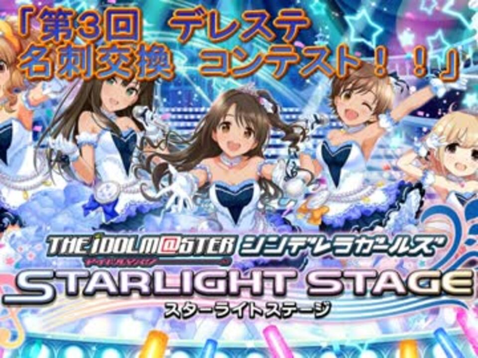 8月25日、シンデレラガールズPの社交場 co1444240 にて、<br />『第3回 デレステ 名刺交換コンテスト』が開催されました。<br />流石に3日連続ですし、そろそろネタ切れで今回は数も多く無く、第4回と合同になるかなと予想していたんですよ。<br /><br />……すみません、自分の読みが如何に『あまぞう』か良く分かりました。<br />デレステユーザーの力を完全に甘く見てましたよ。<br />今回も凄いので、じっくりご覧下さいね!!コメントもよろしくお願いします。<br /><br />第4回の予定、8月26日 21時頃から。<br />第5回以降の予定、8月29日以降。<br /><br />第4回 → <a href="https://www.nicovideo.jp/watch/sm29530600" class="watch">sm29530600</a> <br />第1回第2回 → <a href="https://www.nicovideo.jp/watch/sm29517447" class="watch">sm29517447</a> <br /><br />その他の作品マイリスト <br /><a href="https://www.nicovideo.jp/mylist/38324645" target="_blank" rel="noopener">mylist/38324645</a> <br /><br />おまけ:<a href="https://ch.nicovideo.jp/article/ar1092415" target="_blank" rel="noopener">ar1092415</a>