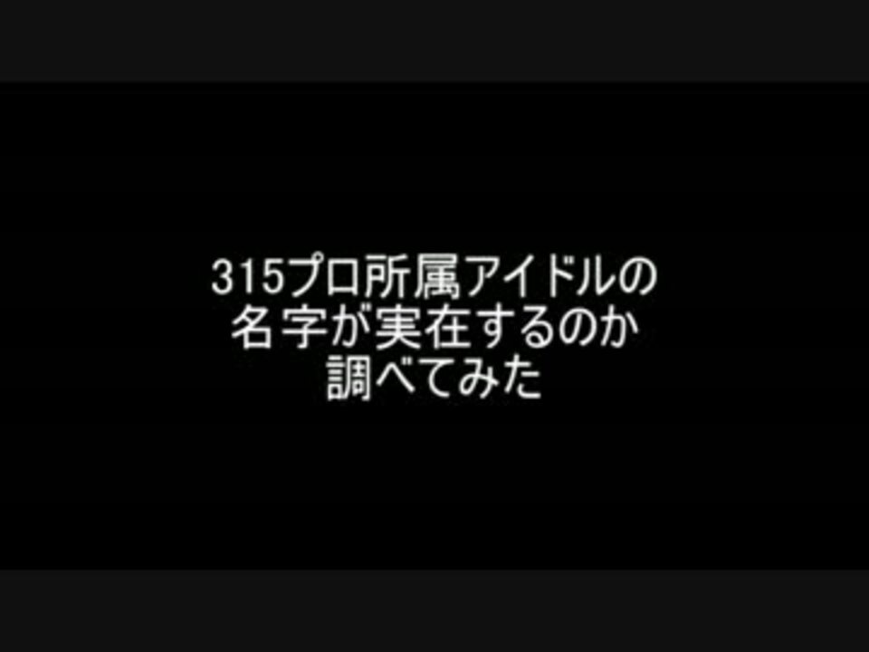 初投稿です<br />315プロのアイドルの名字が実在するのか調べてみました<br />なんでこんなことしたのかって?その場のノリと勢いだよ<br /><br />人生初の動画編集で手のケガが痛み出して泣いたり<br />エンコードがうまくいかずに泣いたり<br />なのでクオリティは察してください<br />備考欄に書いてあることは基本適当です<br />あととあるアイドルについては愛情があふれだした結果ああなりました<br />カジノイベ315かよ(静かにメガホンを叩く)<br /><br />2016/9/11追記<br />れお君の読み間違っていました!穴掘って埋まってきますね<br />正しくは「いがり」です<br />2016/9/14追記<br />5000再生ありがとうございます(土下座)<br />サイバネAとか、アイマスカテラン48位とか、嘘だろ…!?<br />up主ついった→@irona_irony<br />投稿動画はこちら→<a href="https://www.nicovideo.jp/mylist/57401356" target="_blank" rel="noopener">mylist/57401356</a><br />
