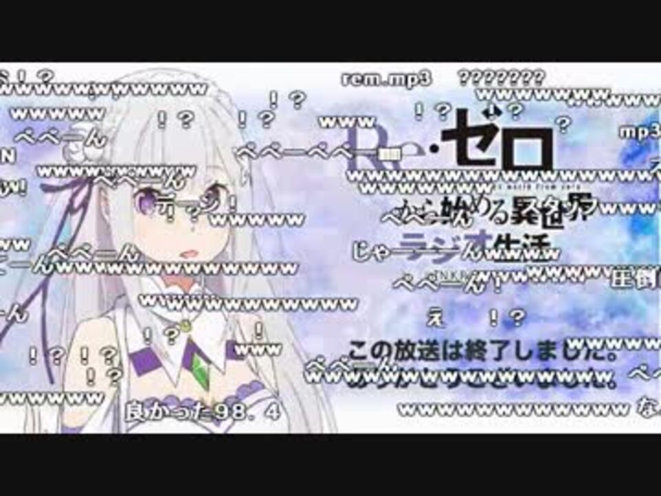 ※アーカイブ配信は各自で視聴お願いします<br /><br />2016/10/24(月) 21:30~放送<br />Re:ゼロから始める異世界ラジオ生活 第28回【<a href="https://live.nicovideo.jp/watch/lv277149470" target="_blank" rel="noopener">lv277149470</a>】<br /> パーソナリティ:高橋李依(エミリア役)<br /> ゲストパーソナリティ:水瀬いのり(レム役)<br /><br />●Re:ゼロから始める異世界生活<br />【インターネットラジオステーション<音泉>】毎週木曜日更新<br /> <a href="http://www.onsen.ag/rezero" target="_blank" rel="noopener nofollow">http://www.onsen.ag/rezero</a><br />【アニメ公式サイト】<br /> <a href="http://re-zero-anime.jp/" target="_blank" rel="noopener nofollow">http://re-zero-anime.jp/</a><br />【アニメ公式Twitter】<br /> @Rezero_official<br />【異世界ラジオ生活 まとめ】<br /> <a href="https://www.nicovideo.jp/mylist/56108489" target="_blank" rel="noopener">mylist/56108489</a><br /><br />前 第27回【高橋李依】→<a href="https://www.nicovideo.jp/watch/sm29726570" class="watch">sm29726570</a><br />次 第29回【小林裕介】→<a href="https://www.nicovideo.jp/watch/sm29904091" class="watch">sm29904091</a>