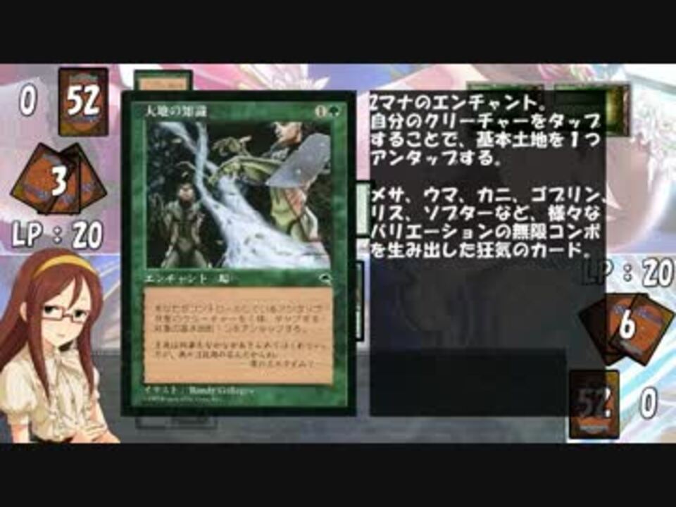レガシー(禁止限定解除)一本。アースクラフト解禁熱望姉貴オッスオッス。<br />今回でルール関係の解説は終了です。次回はフォーマットとかデッキ構築についてとか。<br /><br />かな子はかわいいなぁ!<br /><br /><a href="https://www.nicovideo.jp/watch/sm29722589" class="watch">sm29722589</a><前 次><a href="https://www.nicovideo.jp/watch/sm30041430" class="watch">sm30041430</a> 一覧 <a href="https://www.nicovideo.jp/mylist/57115729" target="_blank" rel="noopener">mylist/57115729</a>