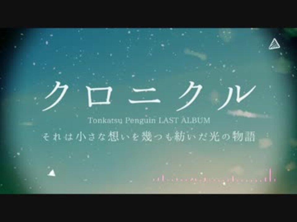それは小さな思いを幾つも紡いだ光の物語―<br /><br />◇2016.10.30 Release 「クロニクル」<br />特設サイト:<a href="http://tonkatsu-penguin.tumblr.com/" target="_blank" rel="noopener nofollow">http://tonkatsu-penguin.tumblr.com/</a><br /><br />とんかつぺんぎん集大成 全曲書き下ろしラストアルバム<br /><br />とんかつぺんぎん(まもも×nayuta)は2013年より活動して参りましたが、<br />本アルバムリリースを以て活動を終了いたします。<br />今まで応援してくださった皆様、有難うございました。<br />最後のアルバム、お手に取っていただたら嬉しいです。<br /> ―とんかつぺんぎん 2016.10.15<br /><br />◆Staff<br />All music&lyrics:まもも [<a href="https://www.nicovideo.jp/user/766148" target="_blank" rel="noopener">user/766148</a>]<br />vocal:nayuta [<a href="https://www.nicovideo.jp/mylist/35828253" target="_blank" rel="noopener">mylist/35828253</a>]<br />illustration&design:壁Neko