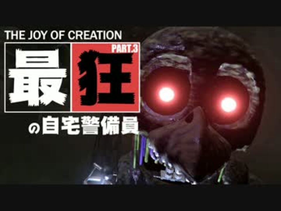 大変お待たせしてしまい申し訳ございません。<br>これでやっとツイッターを直視できそうです。<br>チカちゃん付き合ってくれてありがと!<br><br><br>このゲームはFive Nights At Freddy'sのファンゲームであり<br>現在、製品版はないようです。<br><a href="http://gamejolt.com/games/the-joy-of-creation-reborn/139218" target="_blank" rel="noopener nofollow">http://gamejolt.com/games/the-joy-of-creation-reborn/139218</a><br><br>※明るさは3、4倍程度明るくしています<br><br><br>前回→<a href="https://www.nicovideo.jp/watch/sm29516637" class="watch">sm29516637</a><br><br>次回→<a href="https://www.youtube.com/watch?v=y7-7KEdrYUU" target="_blank" rel="noopener nofollow">https://www.youtube.com/watch?v=y7-7KEdrYUU</a> (Youtube)<br> 数年後、生放送でクリア致しました。<br> (放送の3:15:45~3:41:30の部分です)<br>シリーズマイリスト(<a href="https://www.nicovideo.jp/mylist/57329904" target="_blank" rel="noopener">mylist/57329904</a>)<br><br><span style="color: blue;">活動情報はここで!</span>ツイッター:<a href="https://twitter.com/ABCDYY" target="_blank" rel="noopener nofollow">https://twitter.com/ABCDYY</a><br><span style="color: red;">専用動画もあるよ!</span>Youtube:<a href="http://bit.ly/1LuUSyy" target="_blank" rel="noopener nofollow">http://bit.ly/1LuUSyy</a><br>チャンネル:<a href="http://ch.nicovideo.jp/abcdyychannel" target="_blank" rel="noopener nofollow">http://ch.nicovideo.jp/abcdyychannel</a><br><br>その他のわいわい動画(<a href="https://www.nicovideo.jp/mylist/12317813" target="_blank" rel="noopener">mylist/12317813</a>)<br>