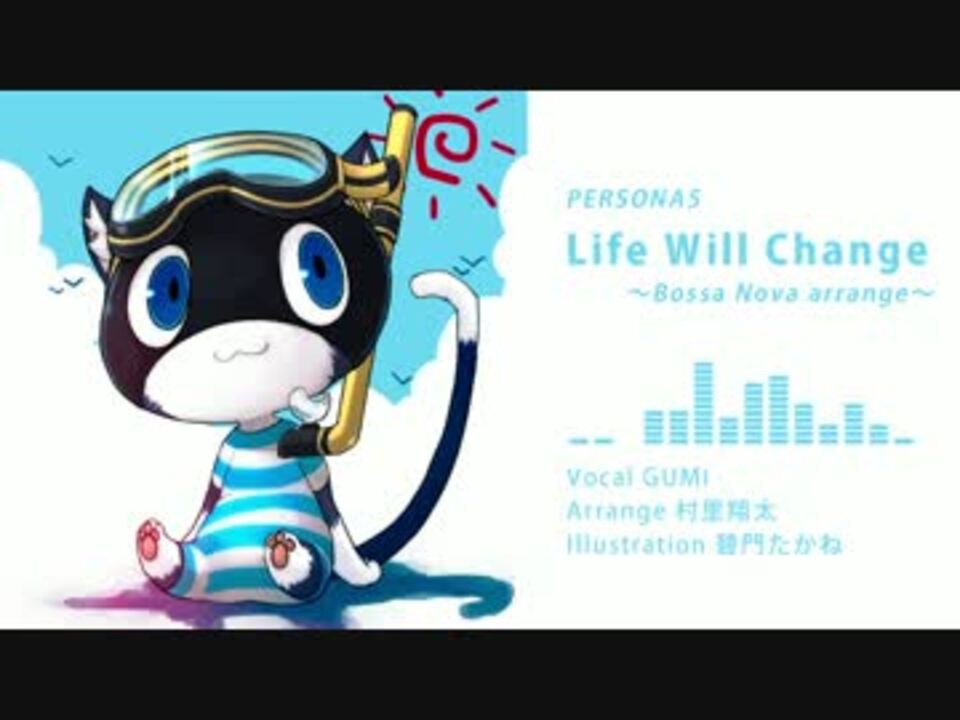 ペルソナ5より「Life Will Change」ボサノバ風アレンジ<br><br>キャラクターの中でモルガナが一番好きです。<br><br>■ボーカル■ GUMI<br>■イラスト■ 碧門たかね様(@reki09)<br><br>歌詞はこちらを参考にさせて頂きました。<br><a href="http://megamitensei.wikia.com/wiki/Life_Will_Change" target="_blank" rel="noopener nofollow">http://megamitensei.wikia.com/wiki/Life_Will_Change</a><br><br>今までの作品→<a href="https://www.nicovideo.jp/mylist/38318678" target="_blank" rel="noopener">mylist/38318678</a><br>