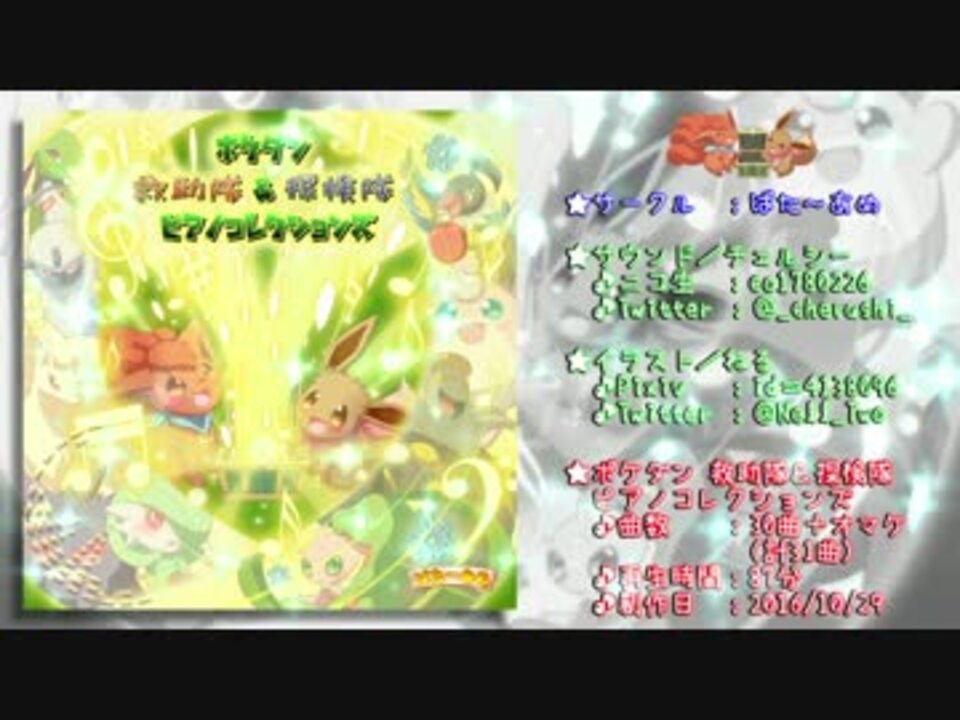 「原曲重視」をテーマにポケダン救助隊&探検隊の曲をピアノアレンジした<br /><br /><font size="5"><font color="red">『ポケダン 救助隊&探検隊 ピアノコレクションズ』</font></font><br /><br />の<b><font color="orange">CDクロスフェード</font></b>です。<br /><br />★イベント: ふぁーすと12(2016/10/29 土) → <a href="http://fur-st.com/" target="_blank" rel="noopener nofollow">http://fur-st.com/</a><br /><b><font color="blue">★サークル: ばた~あめ(スペース C16)</font></b><br />★収録曲: 15曲ずつ + オマケ(計31曲・再生時間 87分)<br />★頒布価格: ¥2,000<br /><br /><b><font color="green">★サウンド/チェルシー</font></b><br /> ♪Twitter: @_cherushi_<br /> ♪マイリス: <a href="https://www.nicovideo.jp/mylist/33921059" target="_blank" rel="noopener">mylist/33921059</a><br /> ♪コミュニティ: co1780226<br /><br /><b><font color="hotpink">★イラスト/ねる</font></b><br /> ♪Twitter: @Nell_Two<br /> ♪Pixiv: id=4138096<br /><br />