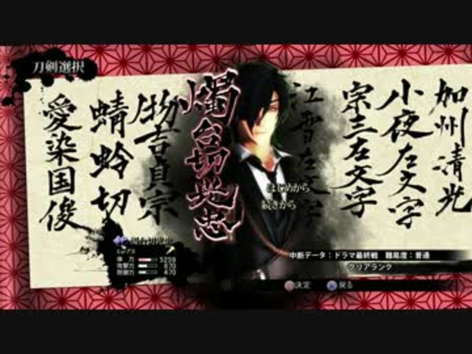 燭台切光忠ドラマルート、最終戦!(風)<br>どうぞ宜しくお願い致します。<br>さっくり楽しんで頂ければ何よりです。拙い所(特にモーション)が沢山なので細かい部分は気にしないでくれる方向けで……<br><br><span style="color: red;">クロスオーバー・声真似</span>要素が含まれます。<br>苦手な方は視聴をお控え下さい。<br>10/31 20:56追記:すみません注意抜けておりましたので追加致しました!申し訳御座いませんorz<br><br>他サイトへ動画・スクリーンショットの転載・掲載、不快になるコメント、お借りしたものへの失礼な発言はおやめください。<br>This video is for Nico Nico Douga only.Do Not Screenshot & Screen Captcha.Do not Re-Upload.<br>お借りしたもの、宣伝への御礼はコンテンツツリー、<a href="https://ch.nicovideo.jp/article/ar1067668" target="_blank" rel="noopener">ar1067668</a>にて!<br>