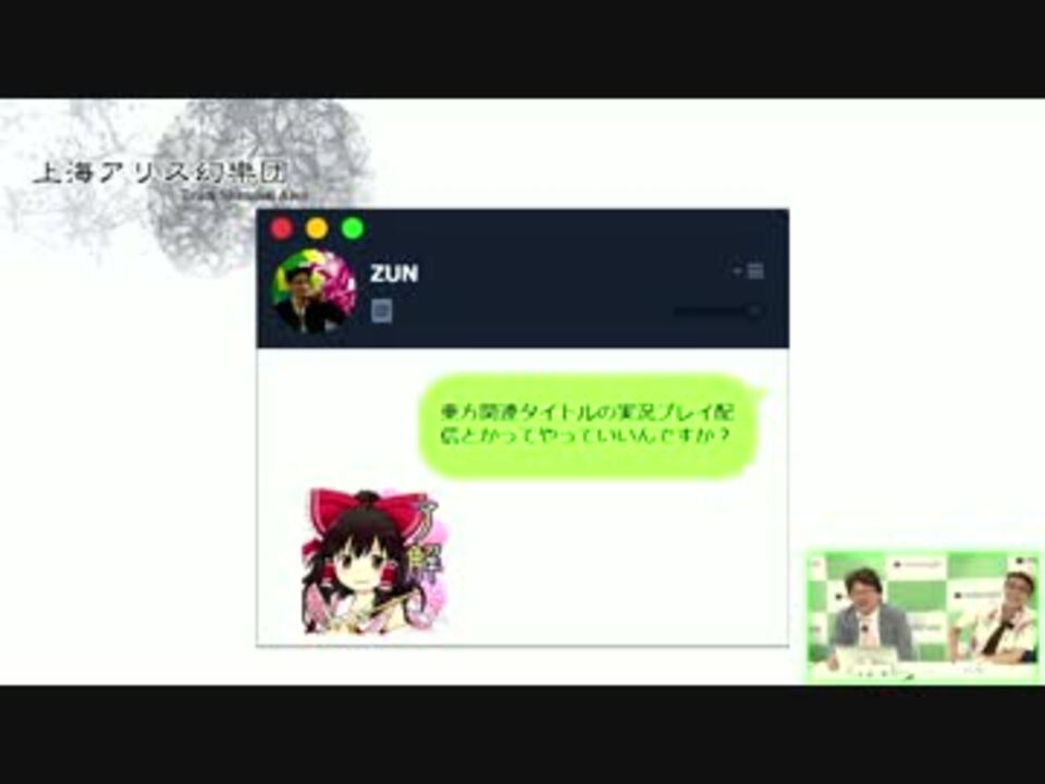 上海アリス幻樂団の、クリエイター奨励プログラム用親作品動画です。<br /><br />上海アリス幻樂団およびZUN制作のコンテンツを使用した二次創作作品(動画、ゲーム実況、自作アレンジ、歌ってみた、など)を、この動画の子作品として登録することができます。<br /><br />※こちらの動画の子作品として登録することで、何らかの許諾・許可を得るものではありません。<br />※クリエイター奨励プログラムについてなんらかの判断をくだすものではありません。<br />※子作品として不適切なものである(上海アリス幻樂団の作品とは関係ない、ガイドラインに則った内容ではない、など)と判断した場合、子作品登録を解除する場合があります。<br /><br />出演(敬称略)<br />MC:結<br />解説:伴(ドワンゴ)・ZUN(上海アリス幻樂団)<br />