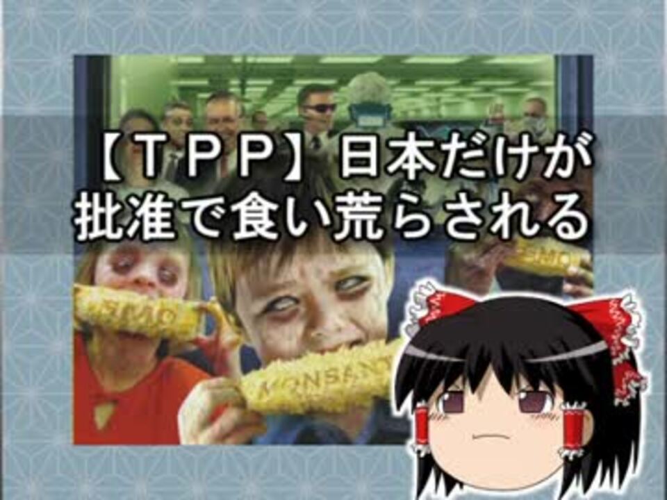 <font color="red" size="3">明日(11/4)委員会での採決が予想されてます。委員会のメンバーへ反対の声を伝えてください!</font><br /><font color="blue" size="2">抗議の宛先はこちらを参照 <a href="http://antiglobalism.blog.fc2.com/blog-entry-240.html" target="_blank" rel="noopener nofollow">http://antiglobalism.blog.fc2.com/blog-entry-240.html</a></font><br /><br />TPP、委員会採決見送り…山本氏「冗談」発言<br /><a href="http://www.yomiuri.co.jp/politics/20161102-OYT1T50065.html" target="_blank" rel="noopener nofollow">http://www.yomiuri.co.jp/politics/20161102-OYT1T50065.html</a><br />(ツイート)<br /><a href="https://twitter.com/uchidashoko/status/793263916612587524" target="_blank" rel="noopener nofollow">https://twitter.com/uchidashoko/status/793263916612587524</a><br /><br />【使わせていただいた素材】(<a href="https://commons.nicovideo.jp/works/nc39410" target="_blank" rel="noopener">nc39410</a>)