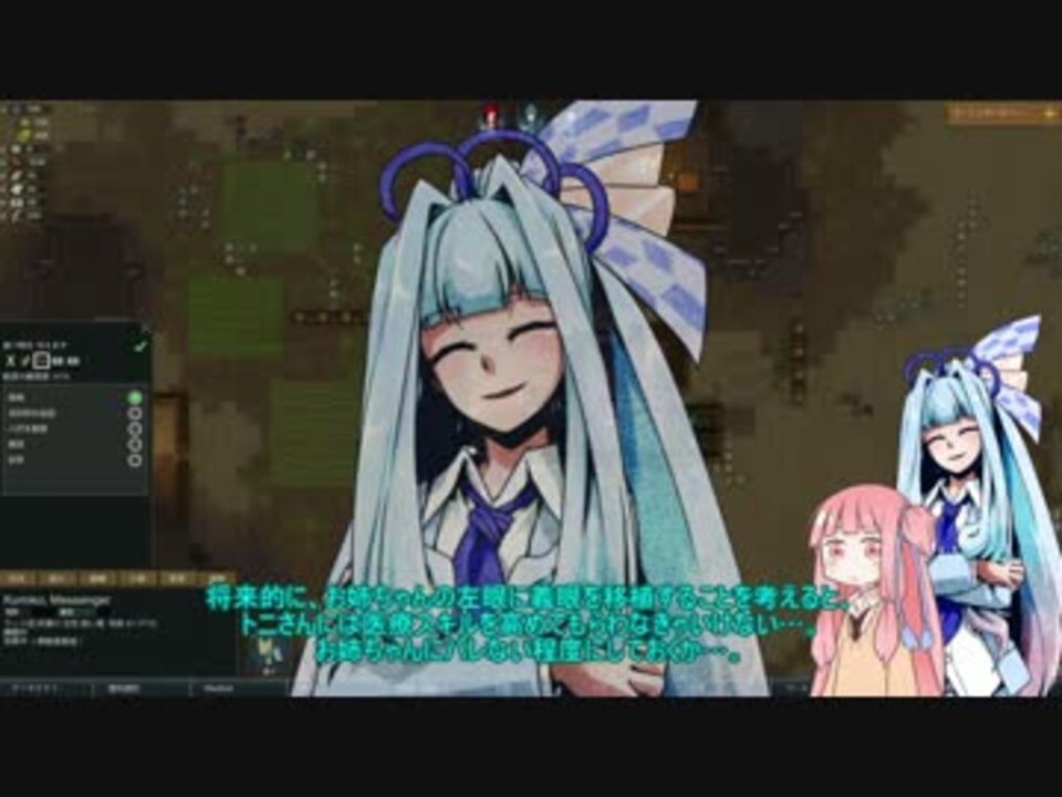 最近、友人に動画を見てもらったら<br>「何してるか全くわからん」<br>と言われたのでそのうちRimWorldについての説明動画を作ろうかと思います。<br><br>内容は知識ゼロの人用なのでプレイしてる人や動画いっぱい見てる人はつまらないかも。<br>出来ました→<a href="https://www.nicovideo.jp/watch/sm30041846" class="watch">sm30041846</a><br><br>みんなもRimWorldやろう!steamで2980円!<br>1ヶ月遊べば1日100円!<br><br>前→<a href="https://www.nicovideo.jp/watch/sm29946854" class="watch">sm29946854</a><br>次→<a href="https://www.nicovideo.jp/watch/sm30071133" class="watch">sm30071133</a><br>マイリス→<a href="https://www.nicovideo.jp/mylist/57170095" target="_blank" rel="noopener">mylist/57170095</a><br>勝手に宣伝<br><br>やる夫がRimWorldをプレイするようです part1[<a href="https://www.nicovideo.jp/watch/sm29405362" class="watch">sm29405362</a>]<br>この動画でRimWorldを生きる術を身に付けました。(死なないとは言ってない)<br><br>琴葉姉妹の検証風茶番劇part4[<a href="https://www.nicovideo.jp/watch/sm29990980" class="watch">sm29990980</a>]<br>琴葉姉妹がゆる~く検証していく動画。殺伐としたリムワールドの癒やし<br><br>