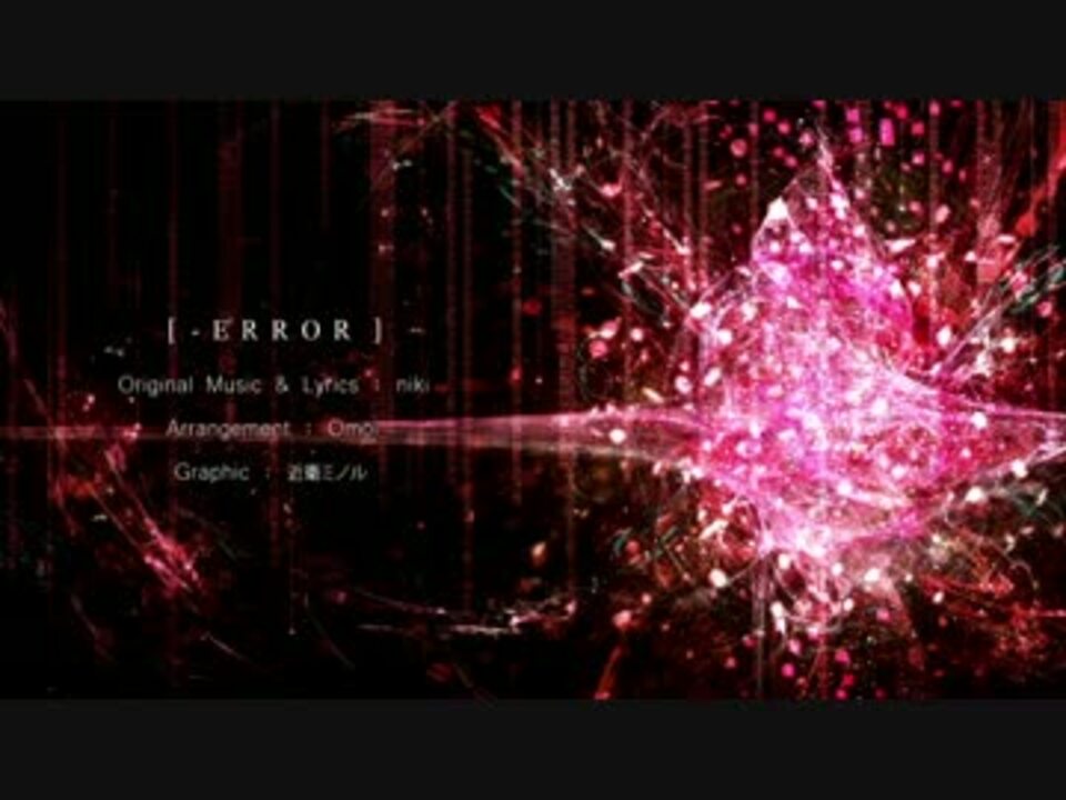 Omoiと申します。<br>この曲を初めて聴いた時の衝撃は今もはっきり覚えています。<br>偉大な原曲様の足元にも及びませんが、精一杯の愛を込めました。<br><br>原曲 : -ERROR / niki様 <a href="https://www.nicovideo.jp/watch/sm12099561" class="watch">sm12099561</a><br><br>ボーカル : 初音ミク<br>調声/アレンジ/動画 : Omoi <a href="https://www.nicovideo.jp/mylist/37582888" target="_blank" rel="noopener">mylist/37582888</a> <a href="https://twitter.com/Omoi3965" target="_blank" rel="noopener nofollow">https://twitter.com/Omoi3965</a> <br>グラフィック : 近衛ミノル様 <a href="http://piapro.jp/t/n3kM" target="_blank" rel="noopener nofollow">http://piapro.jp/t/n3kM</a> <br>Offボーカル置き場 <a href="http://goo.gl/1127jk" target="_blank" rel="noopener nofollow">http://goo.gl/1127jk</a><br><span style="color: #000000; font-size: 13px;">アルバム販売 : BOOTH <a href="https://omoi.booth.pm/" target="_blank" rel="noopener nofollow">https://omoi.booth.pm/</a></span><br><br>■←前作:『新訳 ねぇウィリアム』 <a href="https://www.nicovideo.jp/watch/sm29966363" class="watch">sm29966363</a><br>■→次作:『チット・チャット・マーチ!』 <a href="https://www.nicovideo.jp/watch/sm30476309" class="watch">sm30476309</a><br>