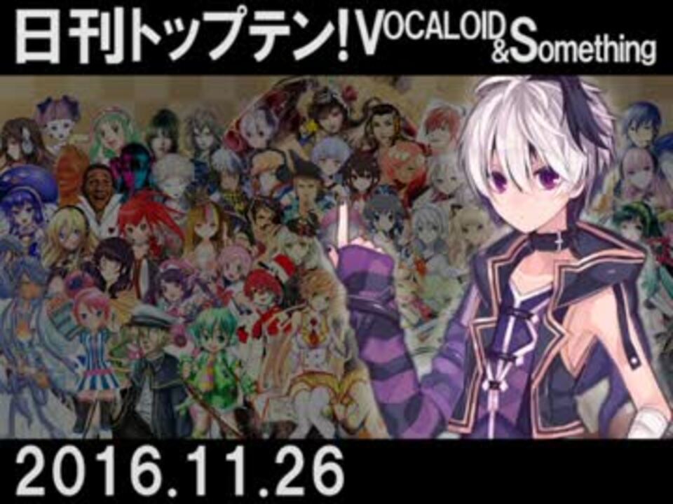 オープニング・アイキャッチ時のBGMはこちら:<a href="https://www.nicovideo.jp/watch/sm27500345" class="watch">sm27500345</a><br /><br />集計期間:2016年11月19日0時~26日5時 順位確定時刻:11月26日6時12分<br />計算式:再生数+コメント数×8+マイリスト数×25(詳細は<a href="https://ch.nicovideo.jp/article/ar951629" target="_blank" rel="noopener">ar951629</a>をご覧ください。)<br />昨日の1位:<a href="https://www.nicovideo.jp/watch/sm30101143" class="watch">sm30101143</a>(v_flower)<br /><br />10:<a href="https://www.nicovideo.jp/watch/sm30105294" class="watch">sm30105294</a> 9:<a href="https://www.nicovideo.jp/watch/sm30106636" class="watch">sm30106636</a> 8:<a href="https://www.nicovideo.jp/watch/sm30111202" class="watch">sm30111202</a> 7:<a href="https://www.nicovideo.jp/watch/sm30110439" class="watch">sm30110439</a> 6:<a href="https://www.nicovideo.jp/watch/sm30104461" class="watch">sm30104461</a> <br />5:<a href="https://www.nicovideo.jp/watch/sm30110946" class="watch">sm30110946</a> 4:<a href="https://www.nicovideo.jp/watch/sm30108943" class="watch">sm30108943</a> 3:<a href="https://www.nicovideo.jp/watch/sm30111724" class="watch">sm30111724</a> 2:<a href="https://www.nicovideo.jp/watch/sm30105817" class="watch">sm30105817</a> 1:<a href="https://www.nicovideo.jp/watch/sm30107114" class="watch">sm30107114</a> <br /><br />PICK UP<br />1年前プレイバック A:<a href="https://www.nicovideo.jp/watch/sm27671486" class="watch">sm27671486</a> <br />超新着ピックアップ B:<a href="https://www.nicovideo.jp/watch/sm30098155" class="watch">sm30098155</a> C:<a href="https://www.nicovideo.jp/watch/sm30111175" class="watch">sm30111175</a> D:<a href="https://www.nicovideo.jp/watch/sm30111357" class="watch">sm30111357</a> <br />E:<a href="https://www.nicovideo.jp/watch/sm30081207" class="watch">sm30081207</a> F:<a href="https://www.nicovideo.jp/watch/sm30089114" class="watch">sm30089114</a> G:<a href="https://www.nicovideo.jp/watch/sm30100044" class="watch">sm30100044</a> H:<a href="https://www.nicovideo.jp/watch/sm30103225" class="watch">sm30103225</a> I:<a href="https://www.nicovideo.jp/watch/sm30101432" class="watch">sm30101432</a> <br />J:<a href="https://www.nicovideo.jp/watch/sm30093612" class="watch">sm30093612</a> K:<a href="https://www.nicovideo.jp/watch/sm30075696" class="watch">sm30075696</a> <br /><br />11/25←<a href="https://www.nicovideo.jp/watch/sm30116284" class="watch">sm30116284</a> <a href="https://www.nicovideo.jp/watch/sm30122740" class="watch">sm30122740</a>→11/27<br />プレイリスト(過去数日分) <a href="https://www.nicovideo.jp/mylist/49271984" target="_blank" rel="noopener">mylist/49271984</a><br />「日刊トップテン!VOCALOID&something」 <a href="https://www.nicovideo.jp/mylist/47849908" target="_blank" rel="noopener">mylist/47849908</a> <br />