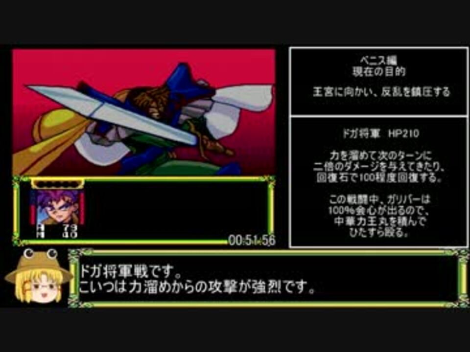 最初はイベントだらけです。<br>ベニス着からベニスクリアまで<br>前<a href="https://www.nicovideo.jp/watch/sm30157226" class="watch">sm30157226</a> /次<a href="https://www.nicovideo.jp/watch/sm30157321" class="watch">sm30157321</a> <br>マイリスト <a href="https://www.nicovideo.jp/mylist/57669881" target="_blank" rel="noopener">mylist/57669881</a><br><br>中華力王ガンだと私も思っていたのですが、攻略本見たら中華力王まると書いてあったので準じました。間違えた所もあるけど。<br>