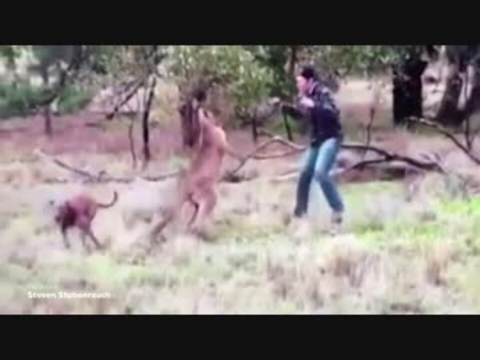 カンガルーに愛犬を襲われた男、カンガルーの顔面を殴る 0:23