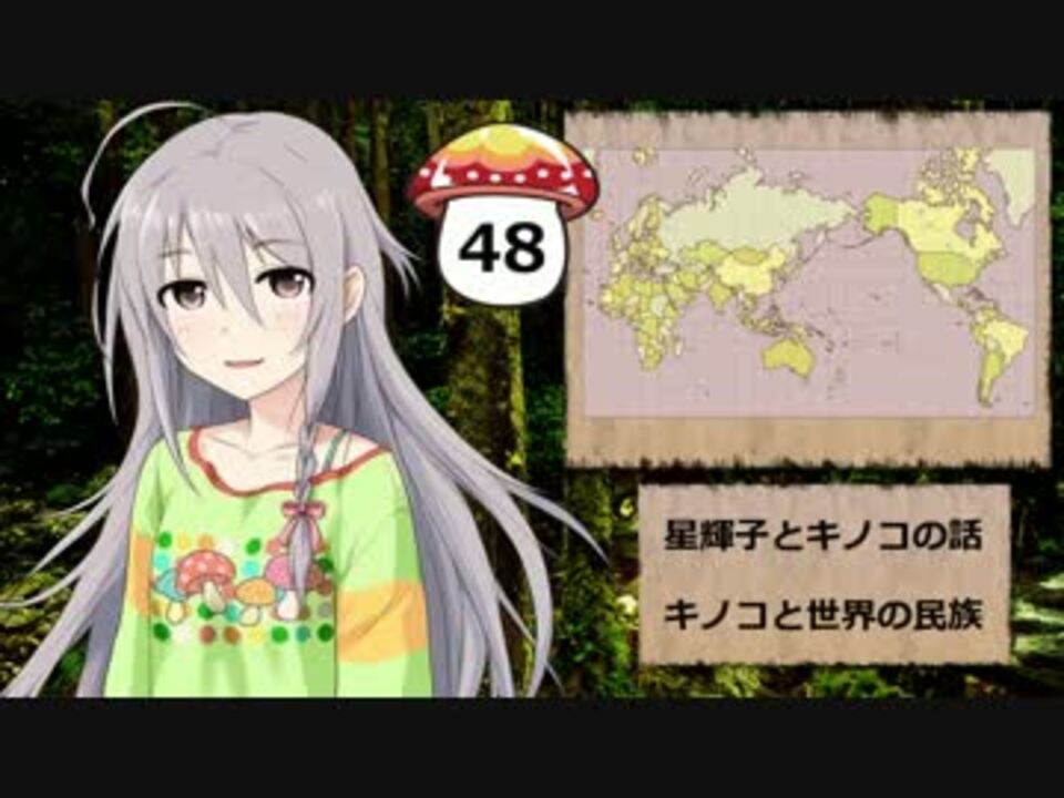 星輝子にキノコと世界の民族について話してもらいました。<br>輝子が好きな人が増えてくれるのと、<br>キノコに興味を持ってくれる人の入口になれば幸いです。<br>立ち絵は晴嵐改様よりお借りしています。<br><br>【前回】マンネンタケ → <a href="https://www.nicovideo.jp/watch/sm30007992" class="watch">sm30007992</a> <br>【次回】ツリガネタケ → <a href="https://www.nicovideo.jp/watch/sm30477011" class="watch">sm30477011</a> <br><br>【参考】シロアリタケ → <a href="https://www.nicovideo.jp/watch/sm22822260" class="watch">sm22822260</a> <br><br>part1まとめ → <a href="https://www.nicovideo.jp/mylist/54190693" target="_blank" rel="noopener">mylist/54190693</a> <br>単発・MAD → <a href="https://www.nicovideo.jp/mylist/54477433" target="_blank" rel="noopener">mylist/54477433</a> <br>星輝子とキノコの話 → <a href="https://www.nicovideo.jp/mylist/40796192" target="_blank" rel="noopener">mylist/40796192</a> <br><br>2020/7/29 宣伝ありがとうございます!