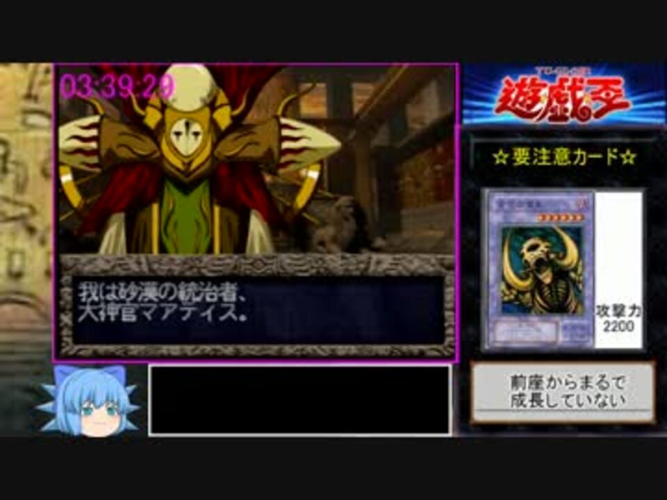 冬至祭を祝いましょう!(半ギレ)<br />前回のアンケートは15分で一週間に一回が多かったです。<br /><br />このゲームはエミュのレギュもあるのでエミュ勢も歓迎です。走れ!<br /><br />part2 <a href="https://www.nicovideo.jp/watch/sm30235874" class="watch">sm30235874</a> part4 <a href="https://www.nicovideo.jp/watch/sm30318109" class="watch">sm30318109</a><br />他のpart1たち <a href="https://www.nicovideo.jp/mylist/45700284" target="_blank" rel="noopener">mylist/45700284</a><br /><br />2016年12月12日 生放送にて更新! 5時間1分37秒! <br />録画はしていないので動画化はできません。引き続き前記録の動画を作っていきます<br /> <br />以前挑戦した通しRTA <a href="https://www.nicovideo.jp/watch/sm24497737" class="watch">sm24497737</a><br />世界記録 <a href="http://www.speedrun.com/Yu-Gi-Oh_Forbidden_Memories" target="_blank" rel="noopener nofollow">http://www.speedrun.com/Yu-Gi-Oh_Forbidden_Memories</a><br /><br /><br />biimシステムのつくり方 <a href="https://ch.nicovideo.jp/article/ar643900" target="_blank" rel="noopener">ar643900</a> <br />コミュ co2498969 <br /><br /><br />