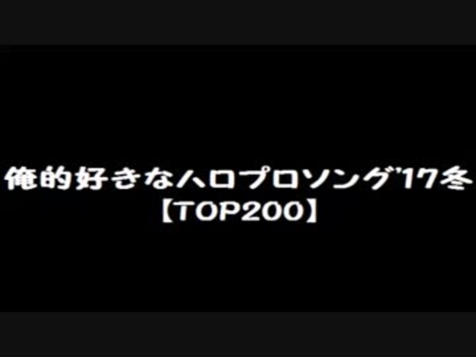 ハロプロ好きなうp主が選んだ、好きなハロプロ楽曲200曲をランキングにした動画です。<br />【対象曲】1998年1月28日~2016年12月31日にリリースされたハロー!プロジェクト所属アイドルの楽曲(カバー含む)。<br />【注意】『俺的』ランキングです。全てのハロプロ楽曲を聴いてきたわけではないので、そこらへんご理解した上で動画を視聴・コメントしてください。<br /><br />【次】俺的'17夏→<a href="https://www.nicovideo.jp/watch/sm31567457" class="watch">sm31567457</a><br />俺的'16夏→<a href="https://www.nicovideo.jp/watch/sm29239528" class="watch">sm29239528</a> 俺的'16冬→<a href="https://www.nicovideo.jp/watch/sm28045421" class="watch">sm28045421</a><br />俺的'15→<a href="https://www.nicovideo.jp/watch/sm26961483" class="watch">sm26961483</a> うpリスト<a href="https://www.nicovideo.jp/mylist/53940608" target="_blank" rel="noopener">mylist/53940608</a>