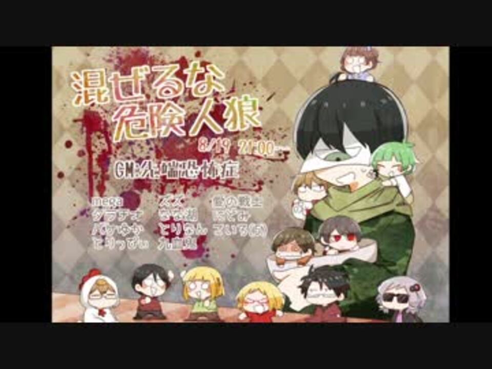 <br />大変お待たせしました。完結です。<br /><br />混ぜるな危険マリオカート8→<a href="https://www.nicovideo.jp/mylist/57478030" target="_blank" rel="noopener">mylist/57478030</a><br /><br /><u><a href="https://www.nicovideo.jp/watch/sm29519540" class="watch">sm29519540</a>←part0 <a href="https://www.nicovideo.jp/watch/sm30289404" class="watch">sm30289404</a>←前 <a href="https://www.nicovideo.jp/mylist/56820739" target="_blank" rel="noopener">mylist/56820739</a> <br /></u>コメントできない人→<a href="https://www.nicovideo.jp/watch/sm30311391" class="watch">sm30311391</a><br /><br />参加者一覧、TwitterIDはpart0へ<br /><br />【視聴者の皆さまへのお願い】<br />・PLを責めない<br />・完璧なプレイングを求めない<br />・カンニングを疑わない<br />・参加者以外の方の名前を出さない<br /><br />NG共有機能もご活用ください<br /><br />サムネイル:しらとり(@shiratori_miso ) BGM:人狼伴奏音楽集(菊田裕樹)<br /><br />用語説明→<a href="https://ch.nicovideo.jp/article/ar1086606" target="_blank" rel="noopener">ar1086606</a> この動画は8月19日(金)の生放送の録画です。