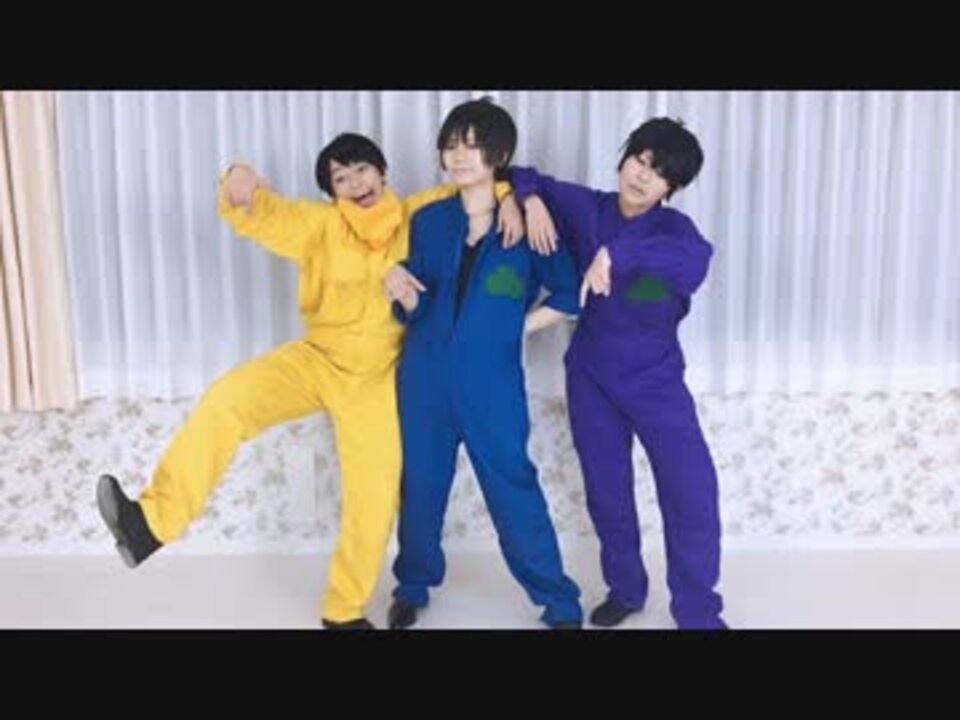 <br /><font size="5"><font color="red">※コスプレをして踊っています。苦手な方、キャラクターのイメージを崩したくない方はご注意を!</font></font><br /><br /><font size="6">2017年もよろしく頼むぜ、ボーイズ&ガールズ!</font><br /><br />あみだくじで誰がどの松をやるか決めた結果がこれです。<br />尚、同時アップのマトモ組を別窓で開いて同時再生すると、<br />六つ子が全員揃う…かも!?(問答無用で揃います)<br /><br />音源本家様:<a href="https://www.nicovideo.jp/watch/sm20644278" class="watch">sm20644278</a><br />参考振付様:<a href="https://www.nicovideo.jp/watch/sm21718613" class="watch">sm21718613</a><br /><br /><br />カラ松<font color="#0033cc">*</font>湊斗アキラ @minatoakilla <a href="https://www.nicovideo.jp/mylist/55666322" target="_blank" rel="noopener">mylist/55666322</a><br />一松<font color="#9966ff">*</font>あるみほいる @alumi_8 <a href="https://www.nicovideo.jp/mylist/22978085" target="_blank" rel="noopener">mylist/22978085</a><br />十四松<font color="#ffff00">*</font>林檎酢 @ringo___11<br />【撮影、編集】 saku。さん <a href="https://www.nicovideo.jp/mylist/37232677" target="_blank" rel="noopener">mylist/37232677</a><br />
