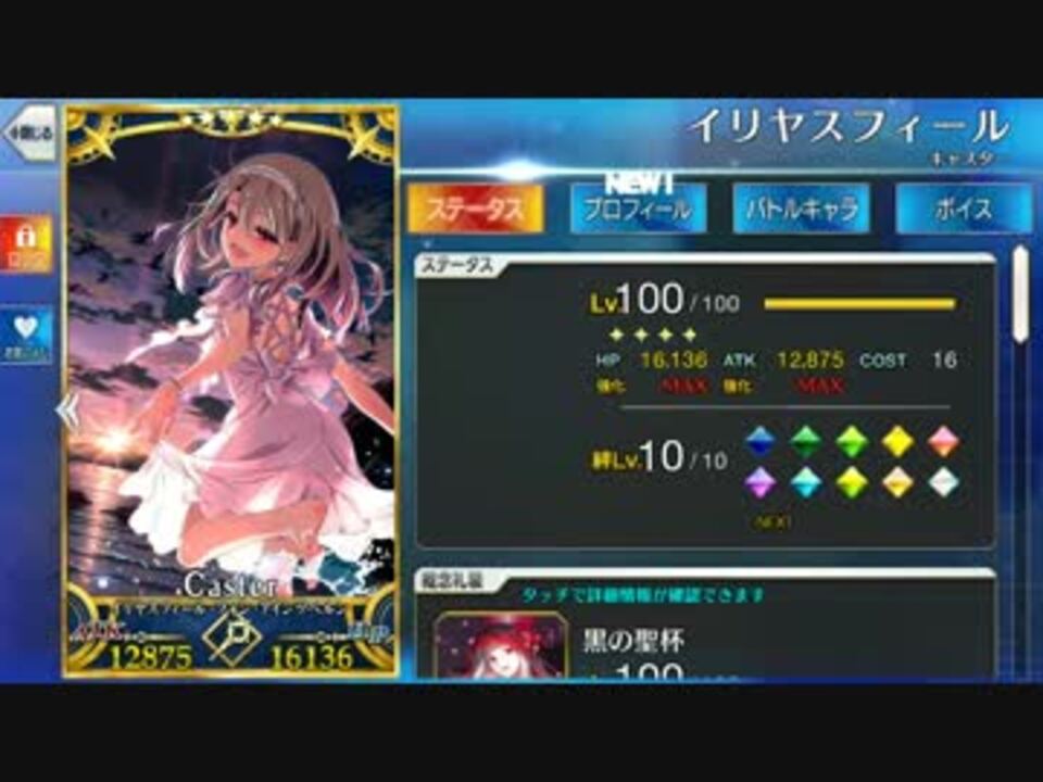 続編 イリヤ・クロで人王との死闘編(大嘘)<a href="https://www.nicovideo.jp/watch/sm30344130" class="watch">sm30344130</a><br /><br />まず、お詫びを<br />高速戦闘の為か、宝具後のダメージが見難いです。申し訳ありません<br /><br />イリヤの絆を10にするまで、ゲーティア攻略はしないと自分に言い聞かせ、フレンド覧に開位の印が並んでる間も、キャメロットの隠れ村を周回し続けるという苦行を耐え、ついに絆MAXになりました。<br />ギリギリまでシナリオを進めたが為に、イリヤの絆上げの間もマシュが4日くらい家出したハプニングもありましたが、絆10のイリヤの火力をどうぞご覧ください。<br /><br /><br /><br /><br /><br /><br /><br /><br /><br />ちなみに宝具総ダメージは3036253です