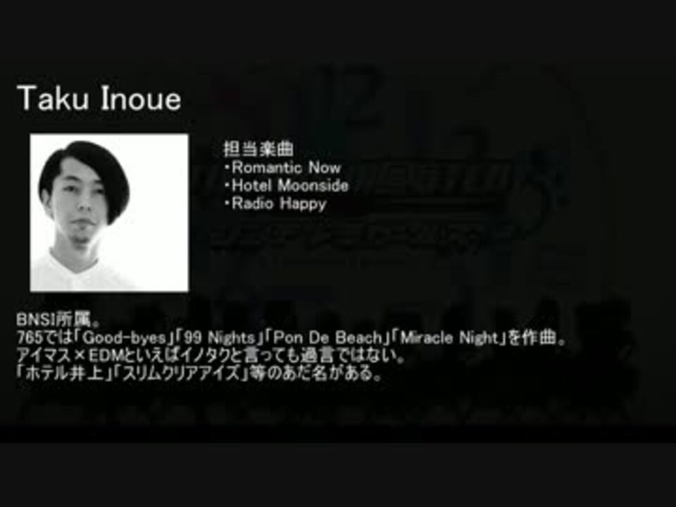 デレマス作曲家を作曲数でランキング化してみました。<br />デレパの作曲家ゲスト回の面白さをもっと共有したくて作りました。<br />この手の動画を作るのは初めてだったので上手く出来てるかどうか分かりませんが、優しい気持ちで見守っていただけると幸いです。<br />「作曲家なんて全然知らない!」というPにこそ是非見てほしいと思います。<br /><br /><s>選曲が担当贔屓?そんなことはない</s><br /><br />何かありましたらコメントまたはTwitter:@aPnKdMyNまで。<br />過去の投稿動画:<a href="https://www.nicovideo.jp/mylist/58688646" target="_blank" rel="noopener">mylist/58688646</a><br /><br />(17/4/2追記・編集)<br />作詞家ランキングを完成させました→<a href="https://www.nicovideo.jp/watch/sm30939055" class="watch">sm30939055</a>