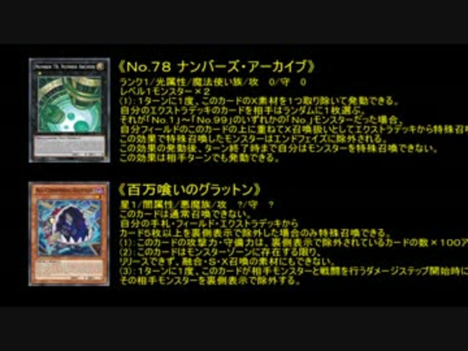 百万喰らいのコストを利用してNo.78のランダム性を克服しました。<br />その圧倒的打点力をご賞味ください。<br /><br />遊戯王ADS関連の投稿→<a href="https://www.nicovideo.jp/mylist/58207753" target="_blank" rel="noopener">mylist/58207753</a><br />その他の投稿→<a href="https://www.nicovideo.jp/mylist/58013132" target="_blank" rel="noopener">mylist/58013132</a><br /><br /><br />〈2017/01/16〉<br />再生力一万を超えている…だと…<br />たくさんの宣伝ありがとうございます。<br /><br />