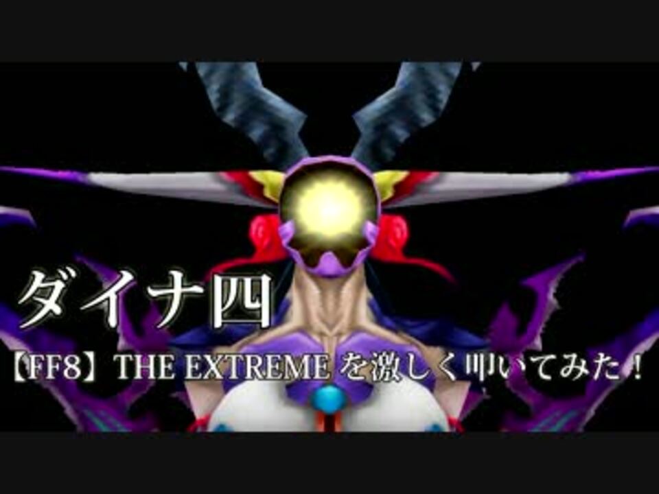 ダイナ四と申します!<br />ファイナルファンタジーー8のアルティミシア戦THE EXTREMEを激しく叩いてみました!<br />!FF7~15まで9週連続アップ企画第9弾!<br /><br />ダイナ四バンド次回ライブ決定!<br />□□<br />【第1回!チキチキ!決死のゲーム音楽グランプリ!】<br />日程:2017年3月11日(土)<br />場所:HOLIDAY SHINJUKU<br />OPEN 18:00 / START 18:30<br />前売 \3,000-(+1drink) <br />当日 \3,500-(+1drink)<br />◆ACT<br />ダイナ四バンド<br />LIVE A BAND<br />□□<br />ご予約はe+にて受付中!<br /><a href="http://sort.eplus.jp/sys/T1U14P0010163P0108P002214082P0050001P006001P0030001" target="_blank" rel="noopener nofollow">http://sort.eplus.jp/sys/T1U14P0010163P0108P002214082P0050001P006001P0030001</a><br /><br />Twitterやってます! → <a href="https://twitter.com/dainashi_drum" target="_blank" rel="noopener nofollow">https://twitter.com/dainashi_drum</a><br />ダイナ四再生リスト → <a href="https://www.nicovideo.jp/mylist/39800727" target="_blank" rel="noopener">mylist/39800727</a><br /><br />出演依頼など御用の方はこちらへご連絡下さい → dainashi_drum@yahoo.co.jp<br />
