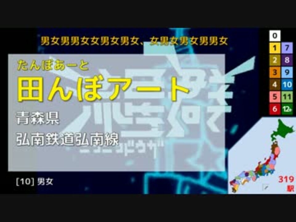<strong>まさかのニコニコメドレーシリーズ第2弾。</strong><s>どうしてこうなった</s><br><br>日本の47都道府県の駅名をそれぞれ<span style="color: red;">12駅以上</span>使って、<br>「ニコニコ動画流星群」を重音テト&和音マコ&波音リツが歌います。重複駅なしです。<br>シリーズ第74弾。<br><br>※同じ読み・表記の別駅を使うことはあります。同表記の駅が複数存在する場合はカッコ書きで区別します。<br>※複数路線が通っている駅の場合、代表して1路線のみを示しています。<br><br>今回の演奏と背景はこちらの本家様より→<a href="https://www.nicovideo.jp/watch/sm2959233" class="watch">sm2959233</a><br><br>ニコニコメドレーシリーズで駅名替え歌:<br>組曲『ニコニコ動画』→<a href="https://www.nicovideo.jp/watch/sm28879764" class="watch">sm28879764</a><br>超組曲『ニコニコ動画』→<a href="https://www.nicovideo.jp/watch/sm33619996" class="watch">sm33619996</a><br>ニコニコ動画難民祭→<a href="https://www.nicovideo.jp/watch/sm34874008" class="watch">sm34874008</a><br>ニコニコ動画裏難民祭→<a href="https://www.nicovideo.jp/watch/sm37103336" class="watch">sm37103336</a><br><br>前作:侵略ノススメ☆→<a href="https://www.nicovideo.jp/watch/sm30470111" class="watch">sm30470111</a>/次作:おーぷん☆きゃんばす→<a href="https://www.nicovideo.jp/watch/sm30608302" class="watch">sm30608302</a><br>過去の作品とか→<a href="https://www.nicovideo.jp/mylist/49483835" target="_blank" rel="noopener">mylist/49483835</a>