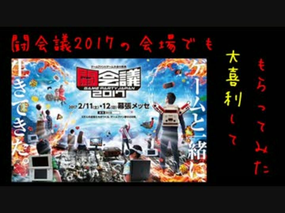 非公式ユーザー記者のスナパイです。<br />闘会議2017に参加してきました!<br />せっかくなので、今年も出会った方々に大喜利してもらいました!<br />お忙しい中、お付き合いくださった皆様ありがとうございました!<br /><br />とっても楽しかったです!<br /><br />前回:超会議2016大喜利【<a href="https://www.nicovideo.jp/watch/sm28752615" class="watch">sm28752615</a>】<br />前々回:闘会議2016大喜利【<a href="https://www.nicovideo.jp/watch/sm28123290" class="watch">sm28123290</a>】<br />次回:超会議2017大喜利【<a href="https://www.nicovideo.jp/watch/sm31133702" class="watch">sm31133702</a>】<br />